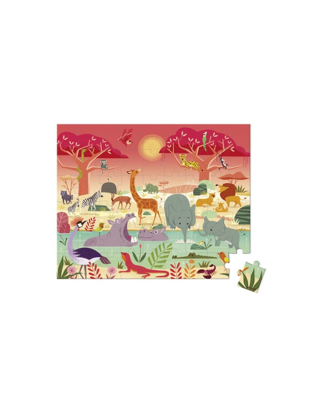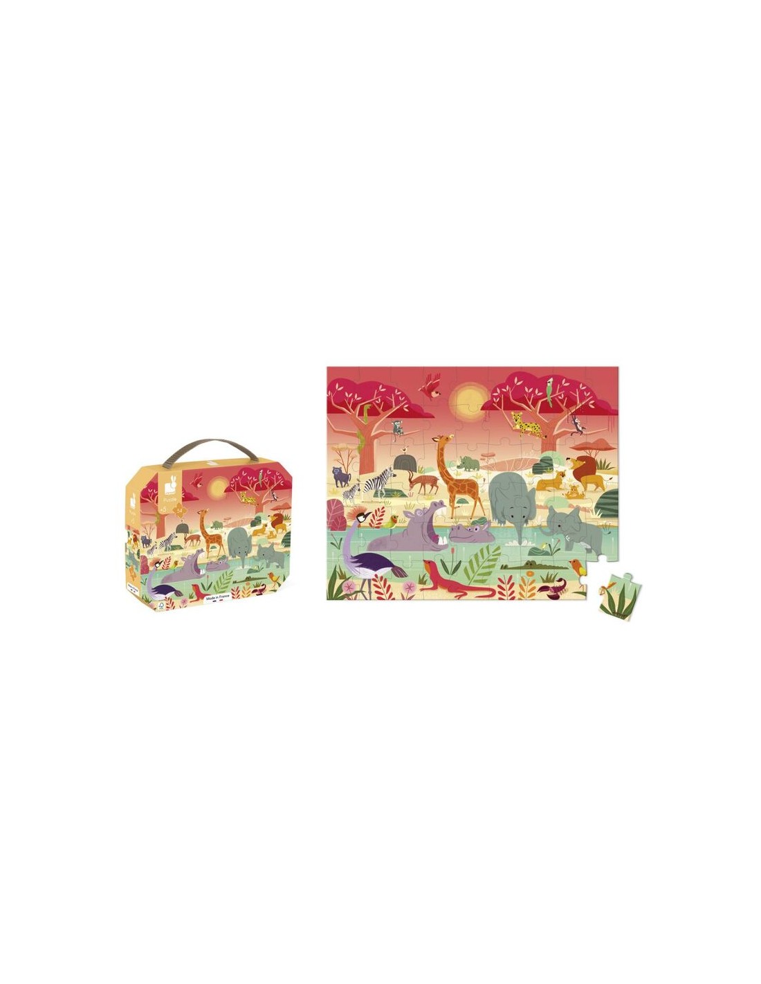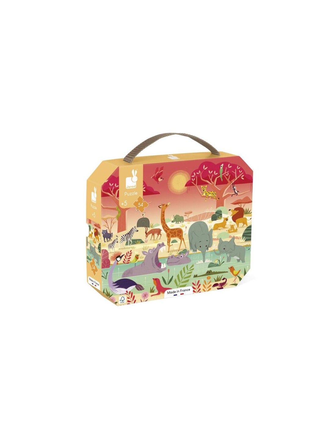 ¡Embarca a los niños en un safari por la naturaleza al anochecer en plena llanura africana! Este magnífico puzle de cartón de 54 piezas con un montón de detalles y colores cálidos promete un cambio de escenario de lo más exótico. ¡La calma de la sabana y los numerosos animales representados invitan a evadirse!. Este puzle ayudará a desarrollar la memoria y la destreza de los niños a partir de 5 años. Gracias a su asa de tela y a su bonito maletín, será fácil llevárselo a todas partes.