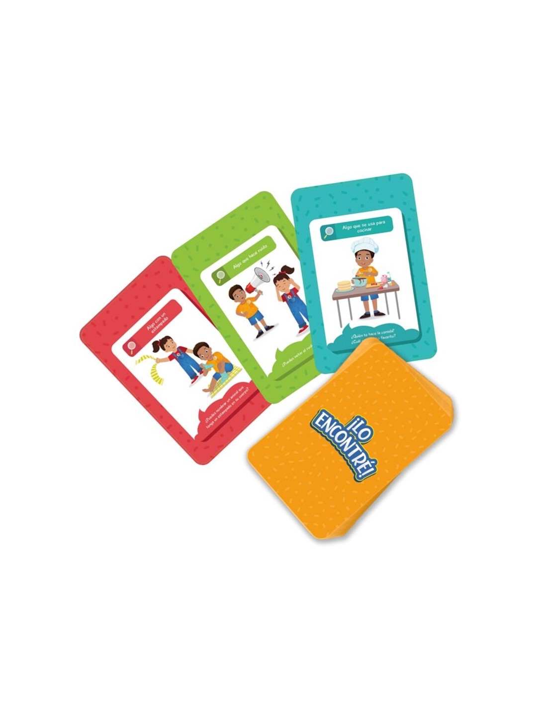Lo Encontré: en Casa es un juego para los más pequeños. Viene a ser una búsqueda del tesoro dentro de casa ¿algo que se usa para cocina? ¿Algo que haga ruido?. Los peques se lanzarán a buscar ese objeto dentro de la casa. El primero en consguir 7 tarjetas, ganará la partida.
