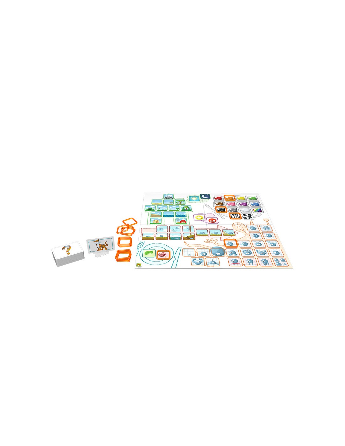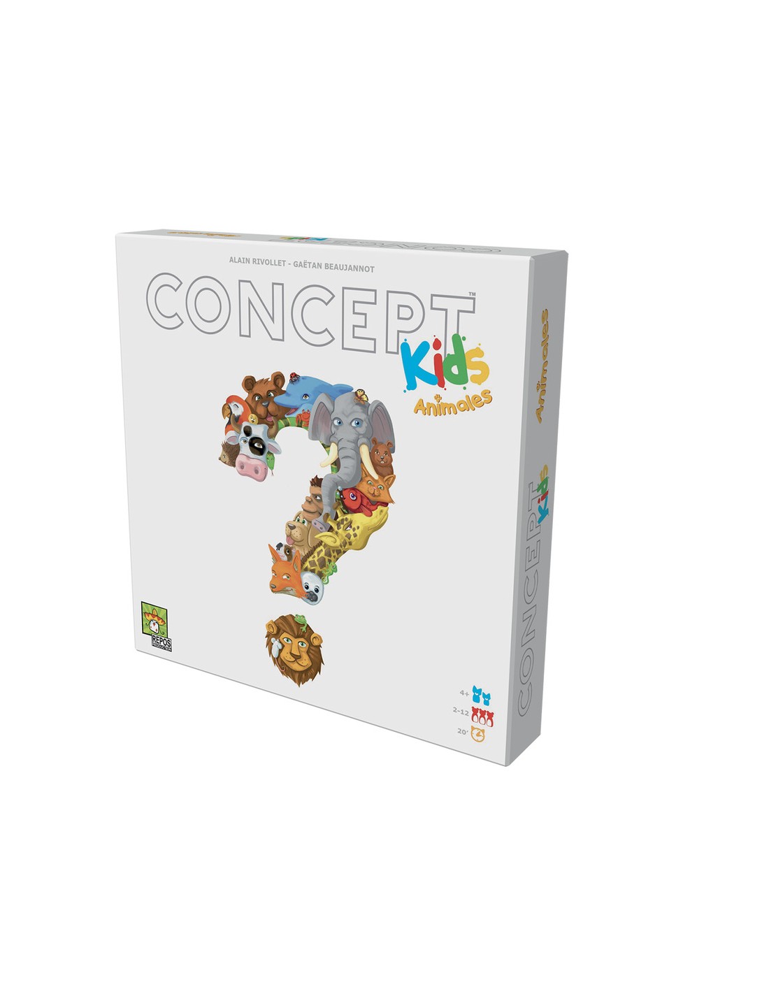 Concept Kids Animales es una versión adaptada a niños a partir de 4 años del reconocido juego Concept. Se trata de un juego cooperativo de 4 a 12 jugadores en el que el objetivo es identificar a 12 animales que se esconden detrás de las cartas.
