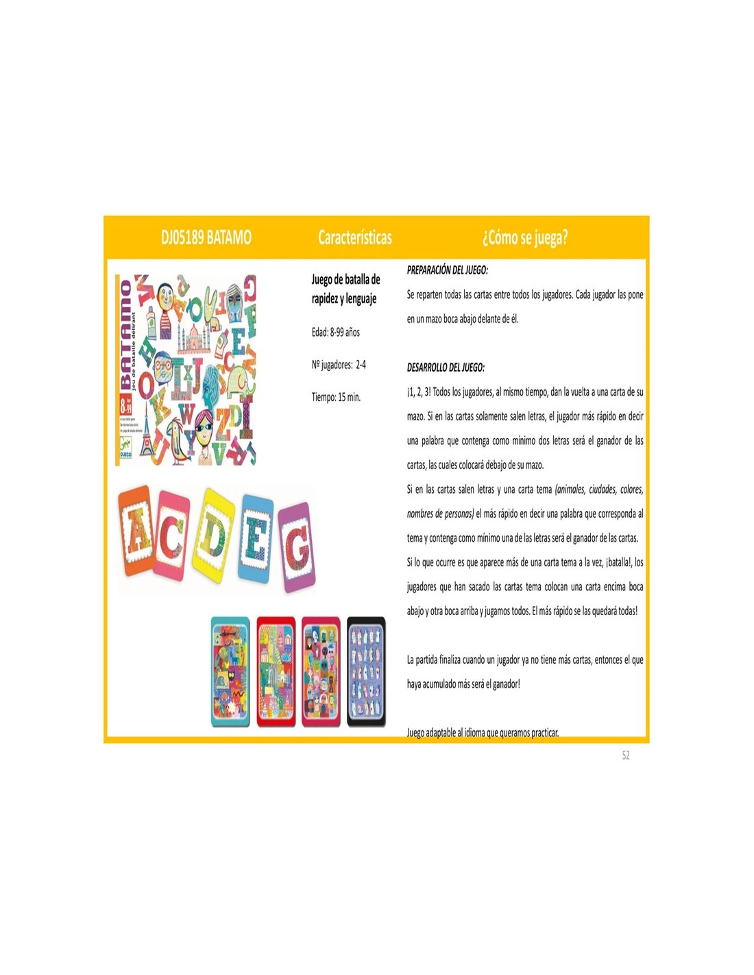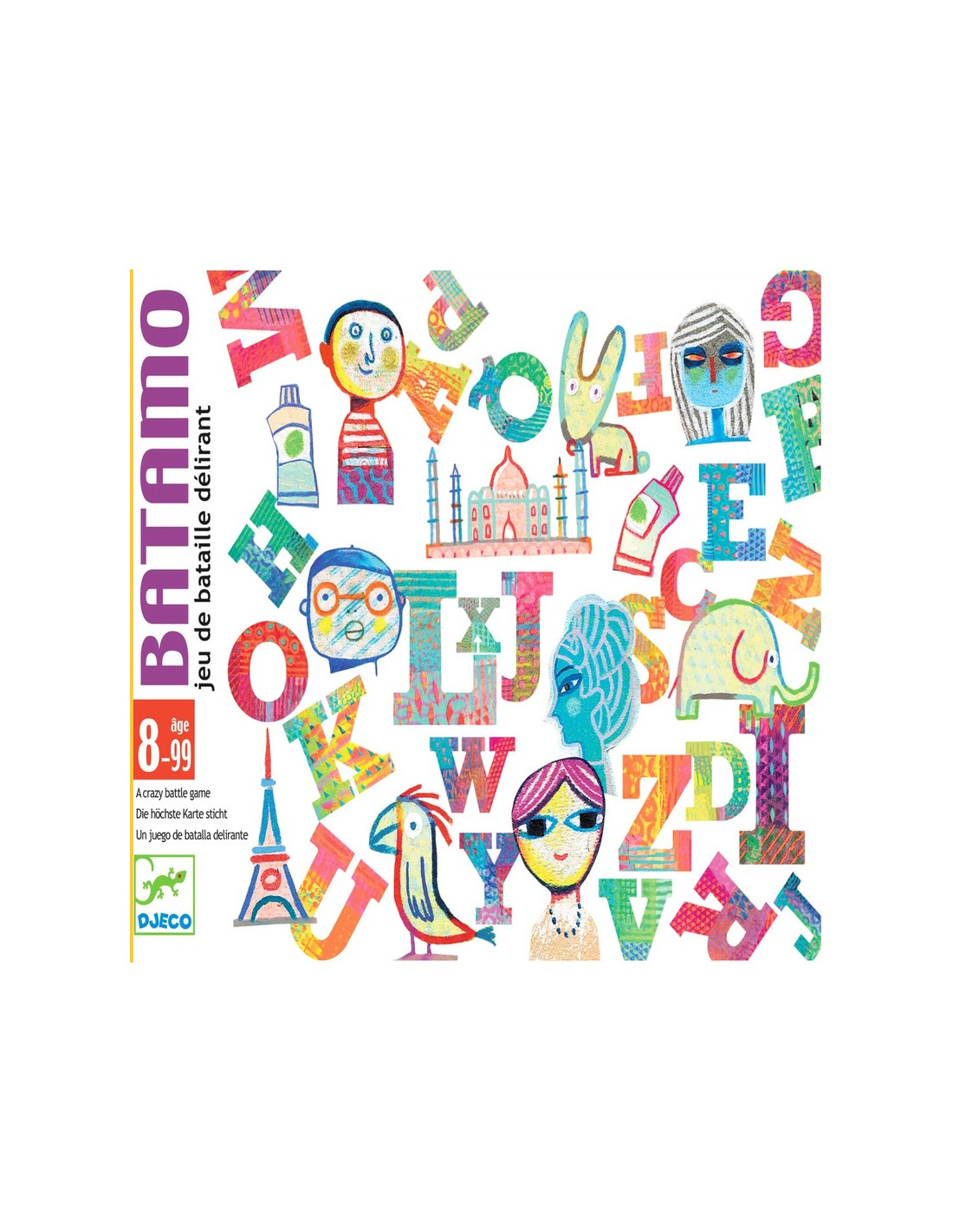 Batamo es un juego de cartas de la prestigiosa marca francesa Djeco, conocida por sus diseños artísticos y materiales de alta calidad. A diferencia de los juegos de batalla tradicionales (como el Bata-Waf), Batamo es un desafío de creatividad y lenguaje.