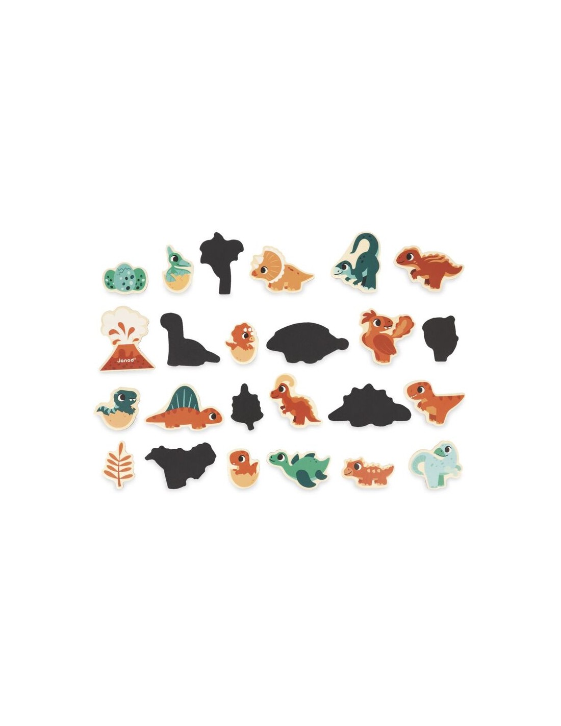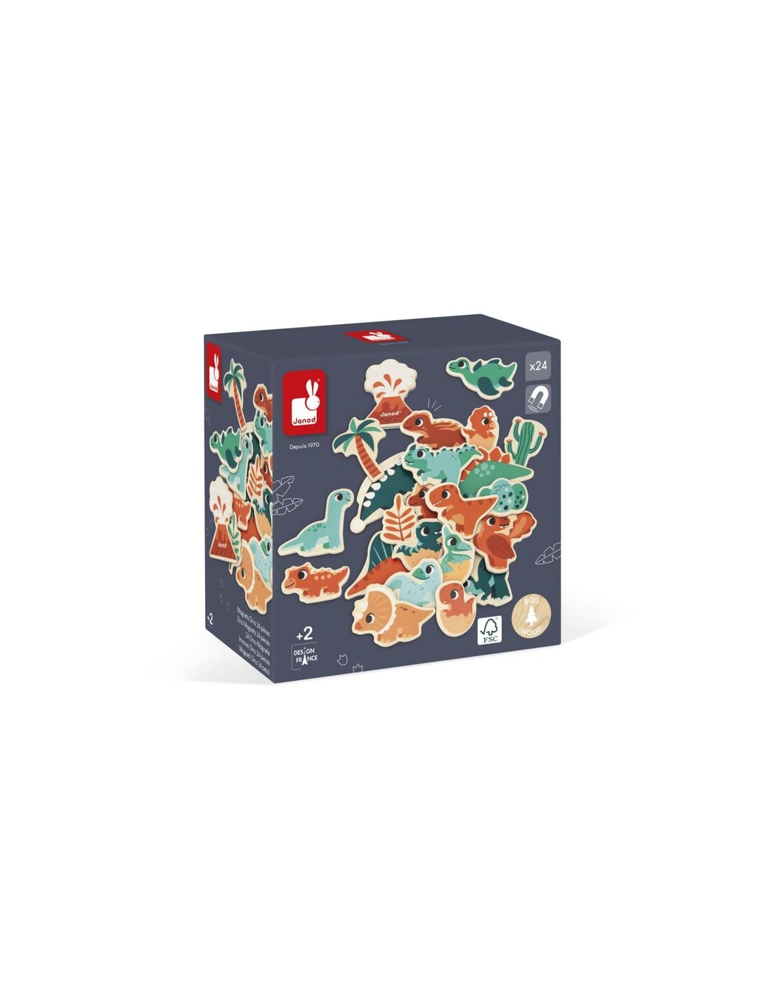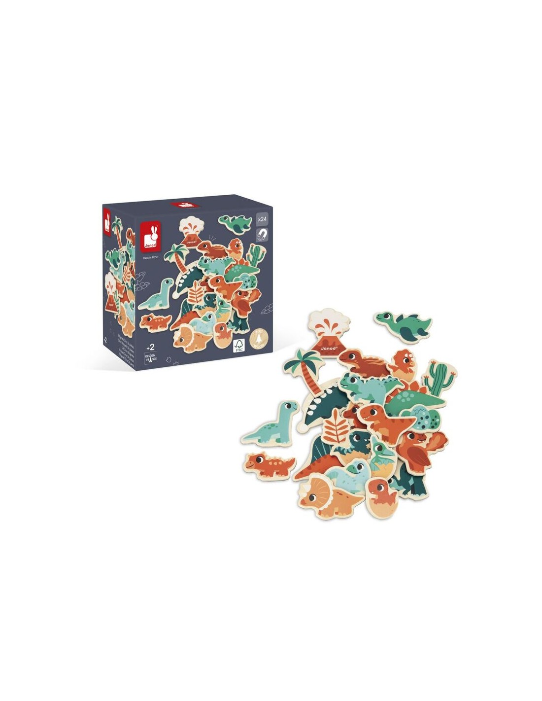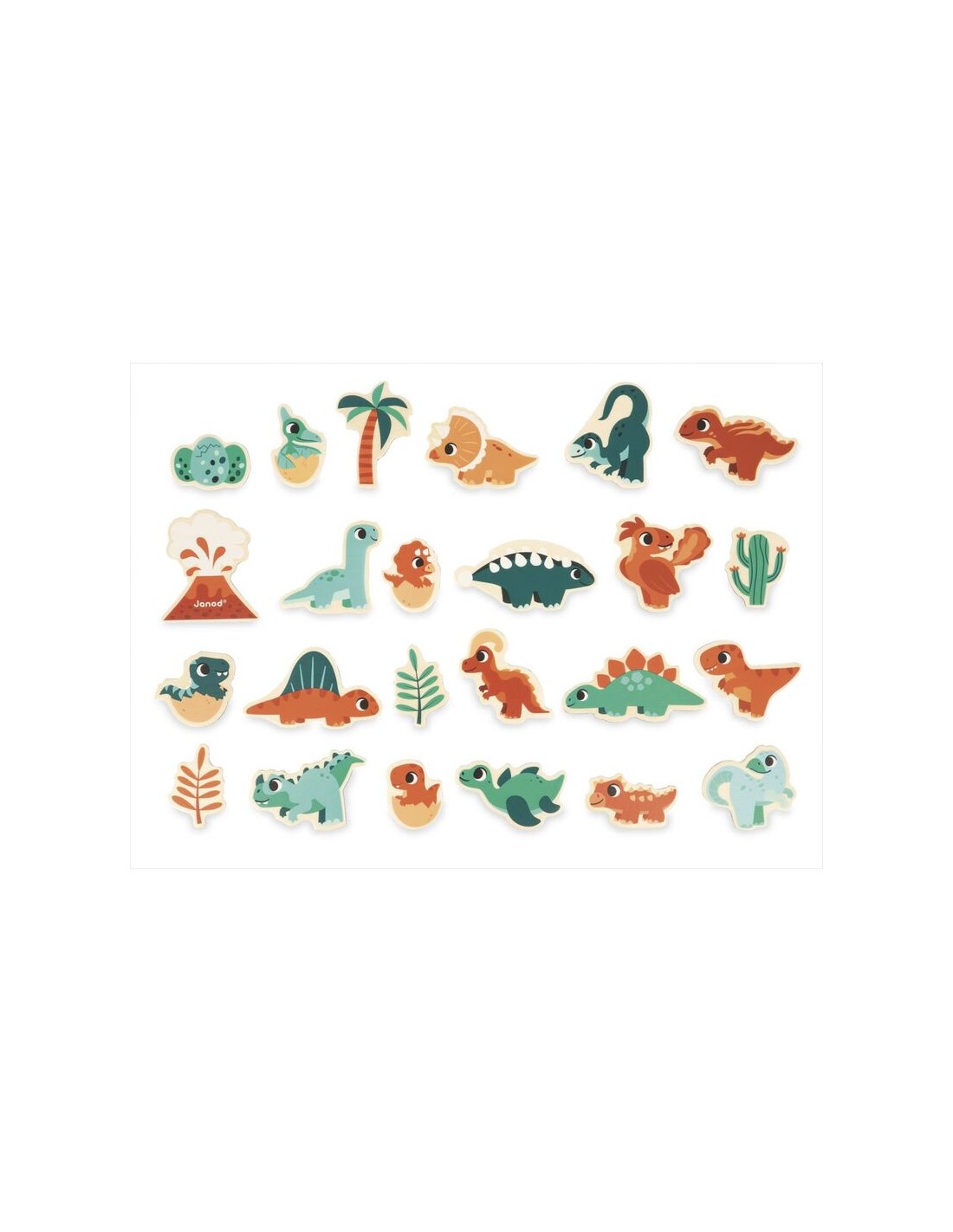¡Embárquese en un viaje a través del tiempo en el mundo de los dinosaurios con nuestros imanes Dino! Se pueden imaginar bonitas historias con el Spinosaurus, el Stegosaurus, el Pteranodon y todos los demás. Este kit está compuesto por 24 imanes de madera que se pueden colocar en pizarras magnéticas, o cualquier otra superficie magnética. De esta forma, su hijo podrá desarrollar su imaginación y su destreza mientras se divierte.