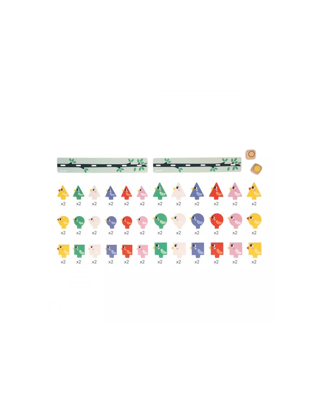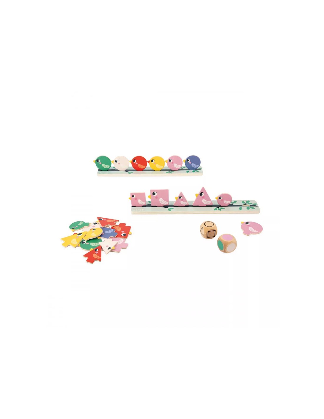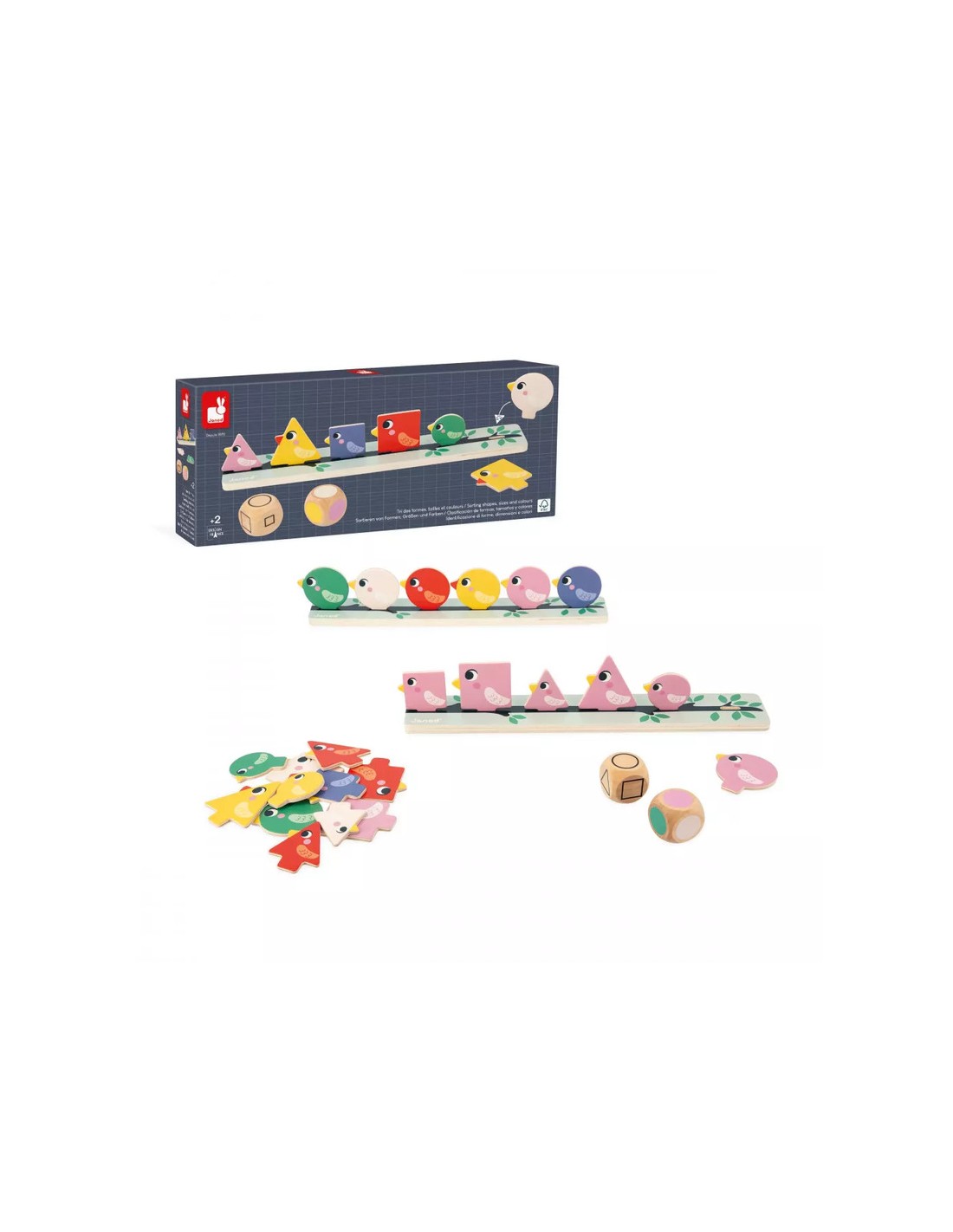 Clasifiación de formas, tamaños y colores pájaros es un juego de la la línea pedagógica de Janod, ideada en colaboración con una maestra para ajustarse al máximo a los aprendizajes y programas de cada nivel. En este juego los niños aprenderán a la vez que juegan las formas geométricas, los colores y a diferenciar los tamaños. Así mismo es ideal para desarrollar la coordinación mano-ojo y la psicomotricidad fina.