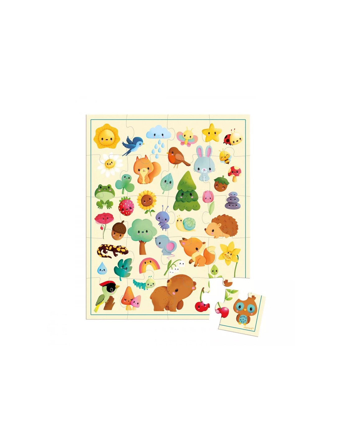 ¿Puede haber algo más ingenioso que aprender los nombres de los animales y elementos de la naturaleza con un puzle para niños a partir de 2 años? La sencillez y la delicadeza caracterizan a este precioso puzzle de cartón que a los niños les encantará hacer y deshacer. Primero hay que concentrarse un poco para armar este puzle de 20 piezas grandes, al principio con un poco de ayuda y luego ya con total autonomía. Después toca el turno de observarlo para intentar ir diciendo los nombres de la salamandra, la golondrina o el pájaro carpintero de este juego de estímulo inspirado en la naturaleza, que son de lo más adorables. Así los bebés van enriqueciendo su vocabulario y van aprendiendo a identificar más fácilmente todo lo que les rodea al salir de paseo.