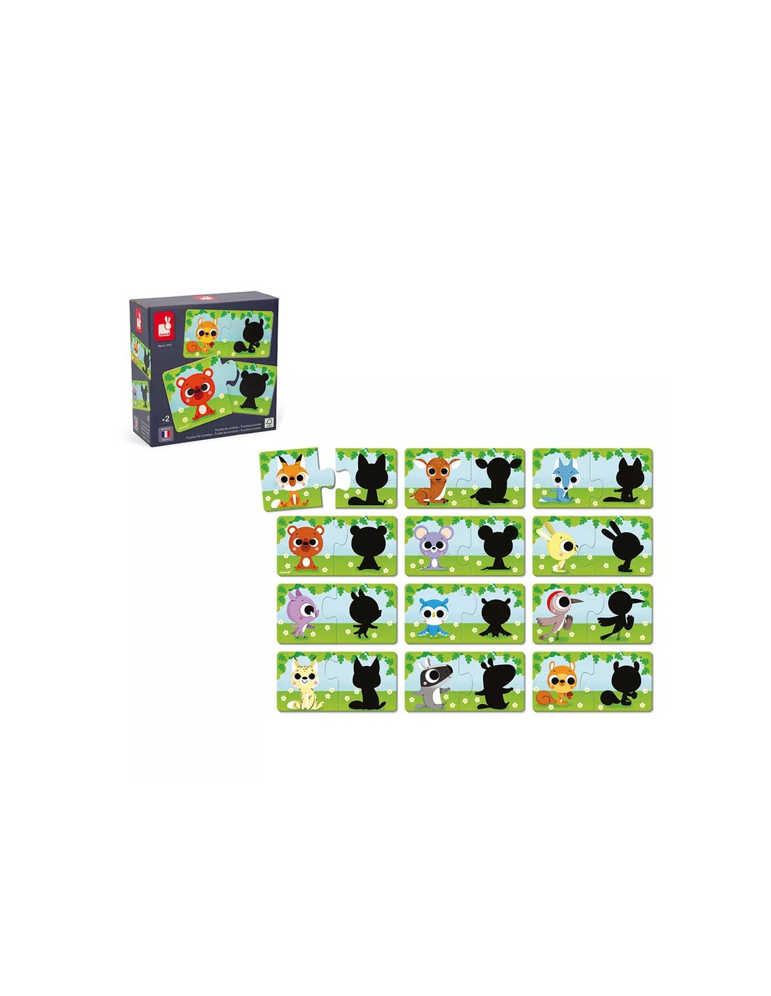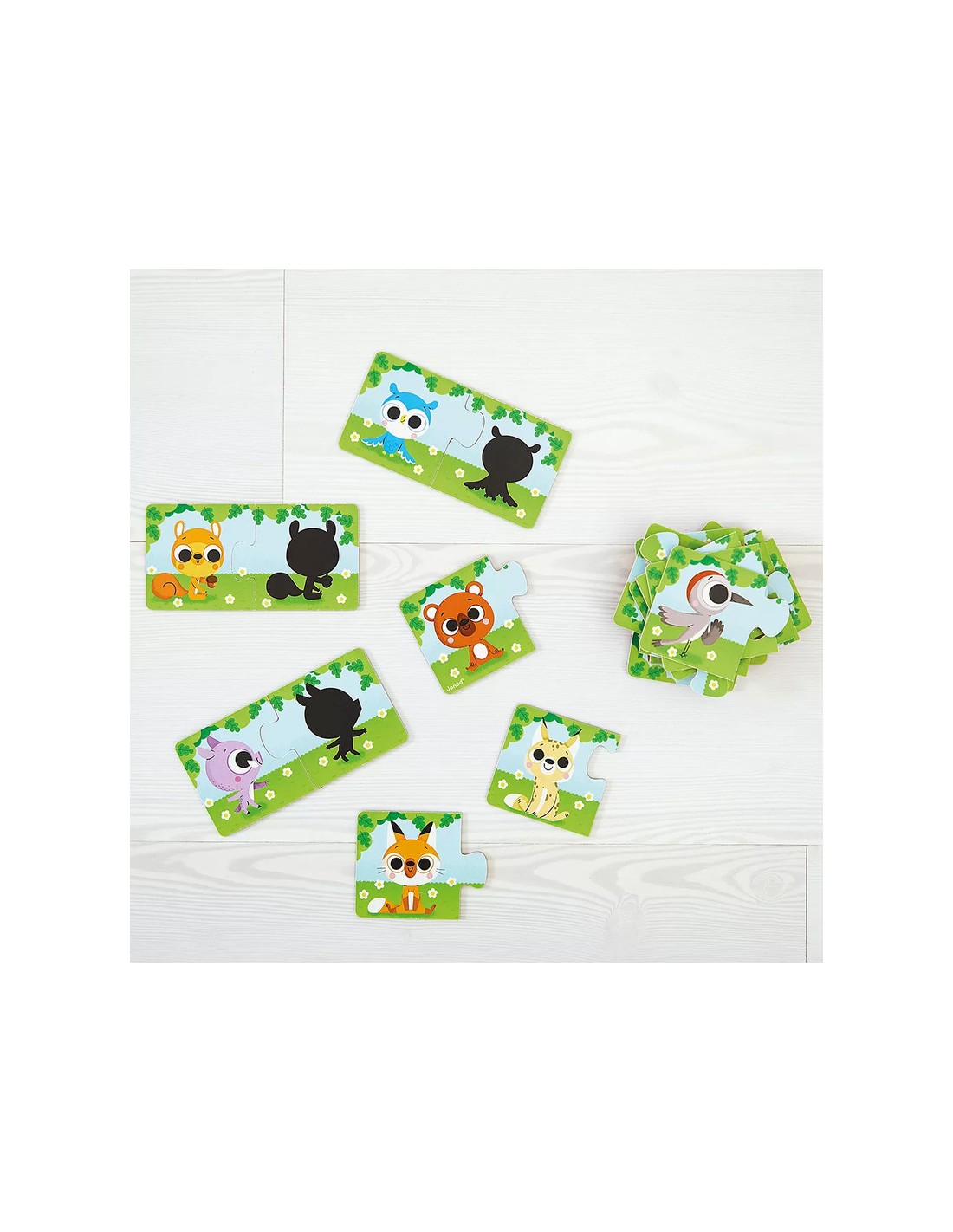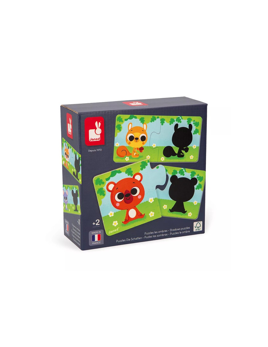 Con el Puzzle los animales y su sombra, niños y niñas a partir de 2 años podrán jugar a descubrir los animales del bosque. Este juego está compuesto por 12 puzzles de 2 piezas. El objetivo del juego es unir a cada animal con su sombra ensamblando las piezas. Es un baile de sombras y formas, un juego del escondite donde los animales del bosque se revelan a través de sus siluetas.