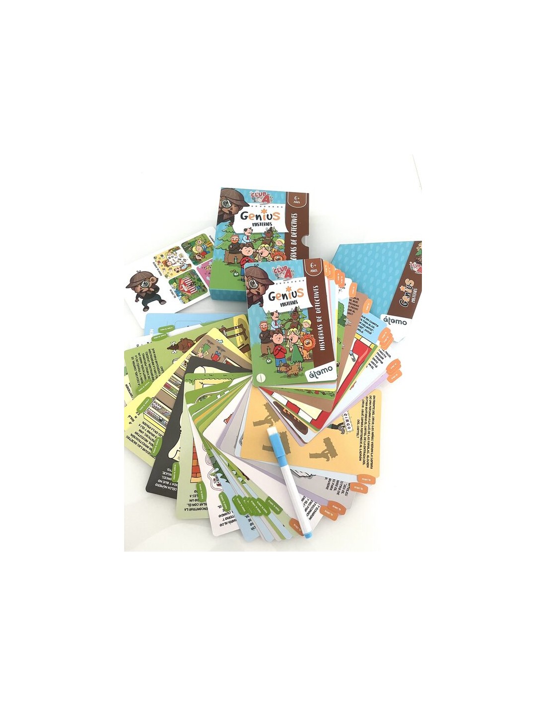 Genius! Misterios Club A es un cuaderno con 80 páginas llenas de desafios para resolver 4 historias de detectives: el circo, el robo al banco, misterio en el refugio y el campamento. Recomendado a partir de 6 años los desafios de Genius! Misterios desarrollan el pensamiento lógico, habilidades grafomotrices, la concentración y la memoria.