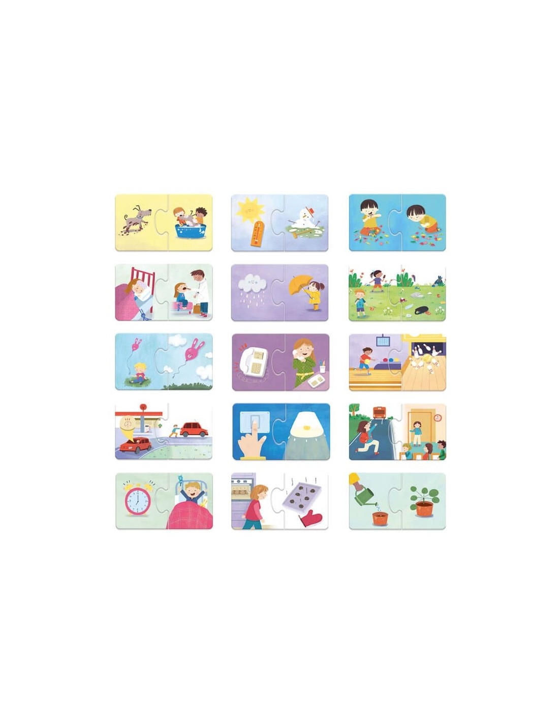 ¿Qué pasa cuando llueve? Un original juego de lógica, en el que los niños observan y comparan objetos y situaciones, aprendiendo las correlaciones y relaciones de causa y efecto entre las cosas.