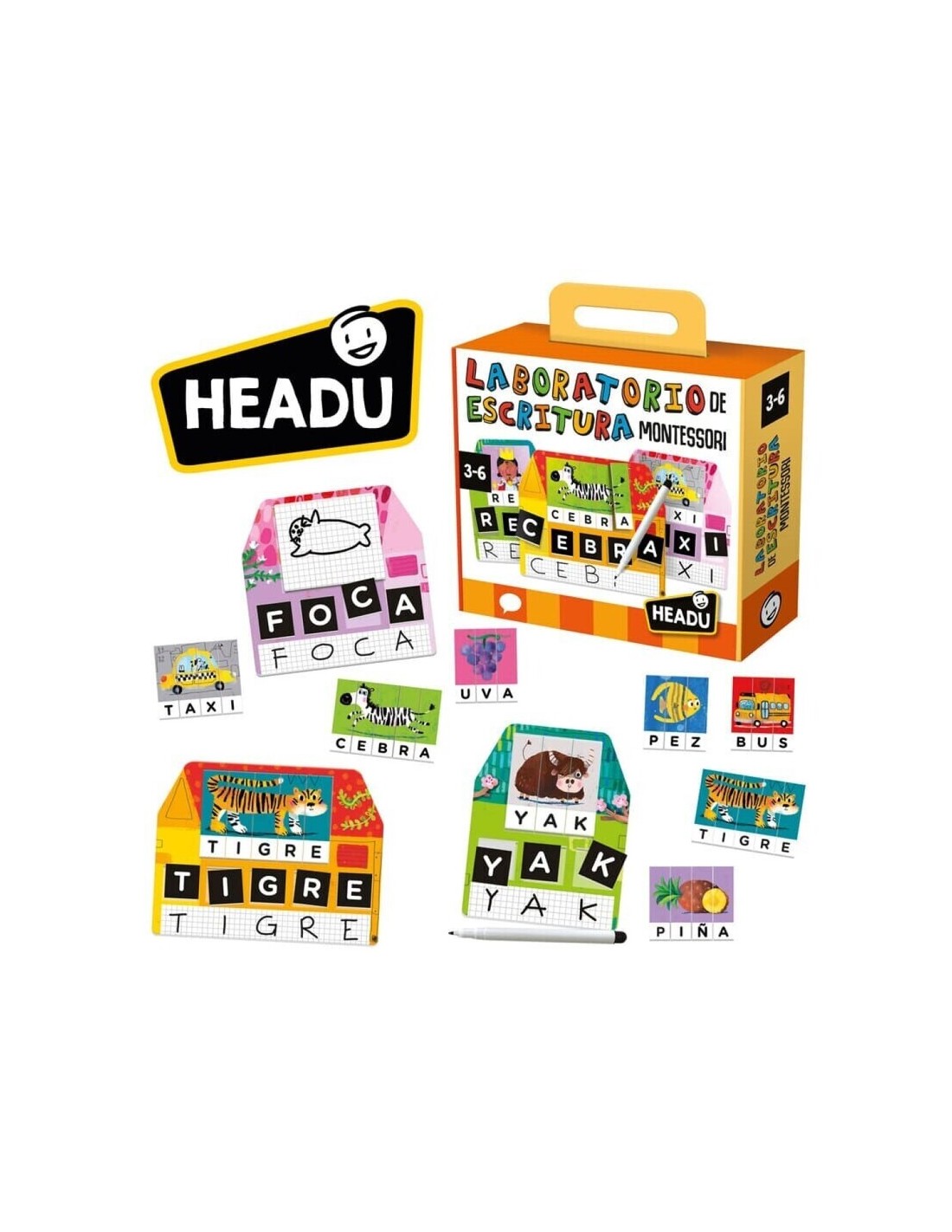 ¿Buscas una forma divertida y educativa para que tus hijos den sus primeros pasos en el mundo de la lectura y la escritura? El Laboratorio de Escritura Montessori de Headu es el juego perfecto para niños de 3 a 6 años.
