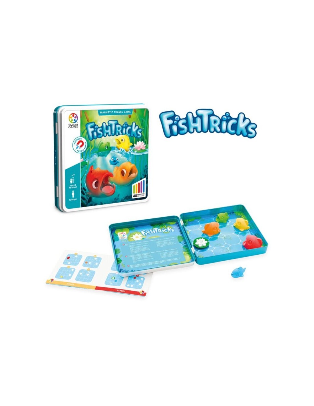 Fishtrick de SmartGames es un ingenioso y divertido juego de lógica para un solo jugador que te desafiará a pensar estratégicamente para crear un desfile de peces. Si buscas un rompecabezas estimulante que desarrolle habilidades cognitivas clave, Fishtrick es una opción perfecta tanto para niños como para adultos.