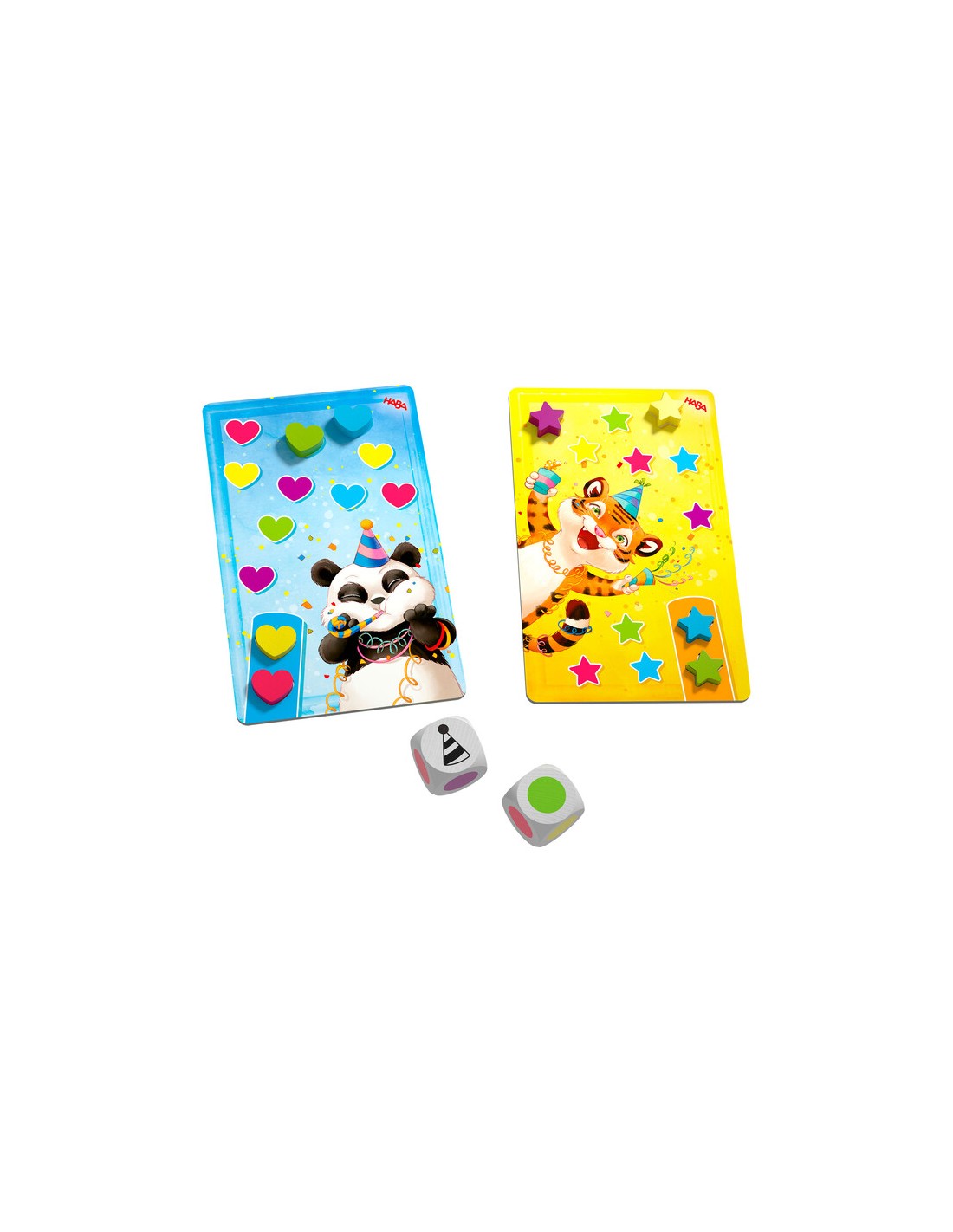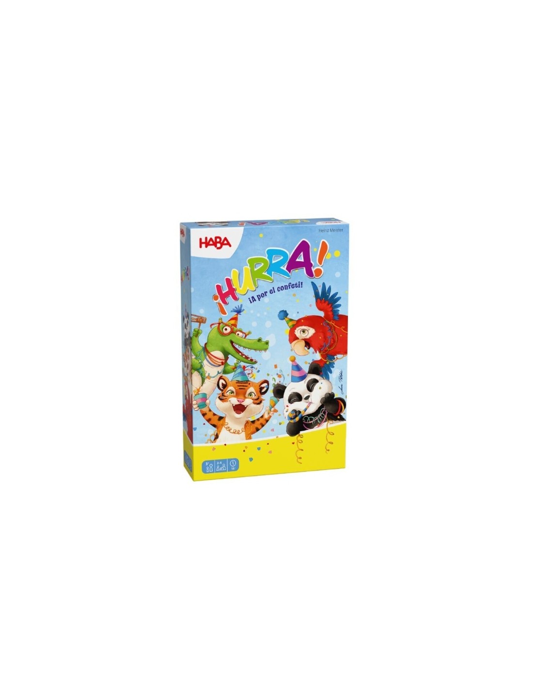 ¡Hurra! de HABA es un juego de mesa para niños a partir de 3 años que combina diversión, aprendizaje y motricidad. Con dados de colores y fichas de confeti, los pequeños deberán ayudar a Panda, Cocodrilo y sus amigos a preparar una fiesta inolvidable.