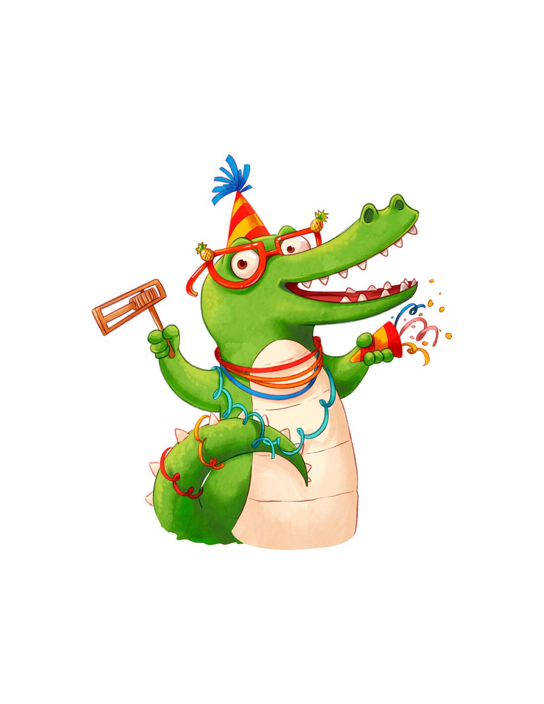 ¿Qué hace falta para organizar una fiesta estupenda? Por supuesto, un montón de confeti de colores, eso siempre crea un ambiente festivo. Panda, Cocodrilo y el resto de la pandilla se lo pasan genial con sus cañones de confeti. Ganará quien, con un poco de suerte con los dados, logre repartir primero el confeti de colores por todo su animal.