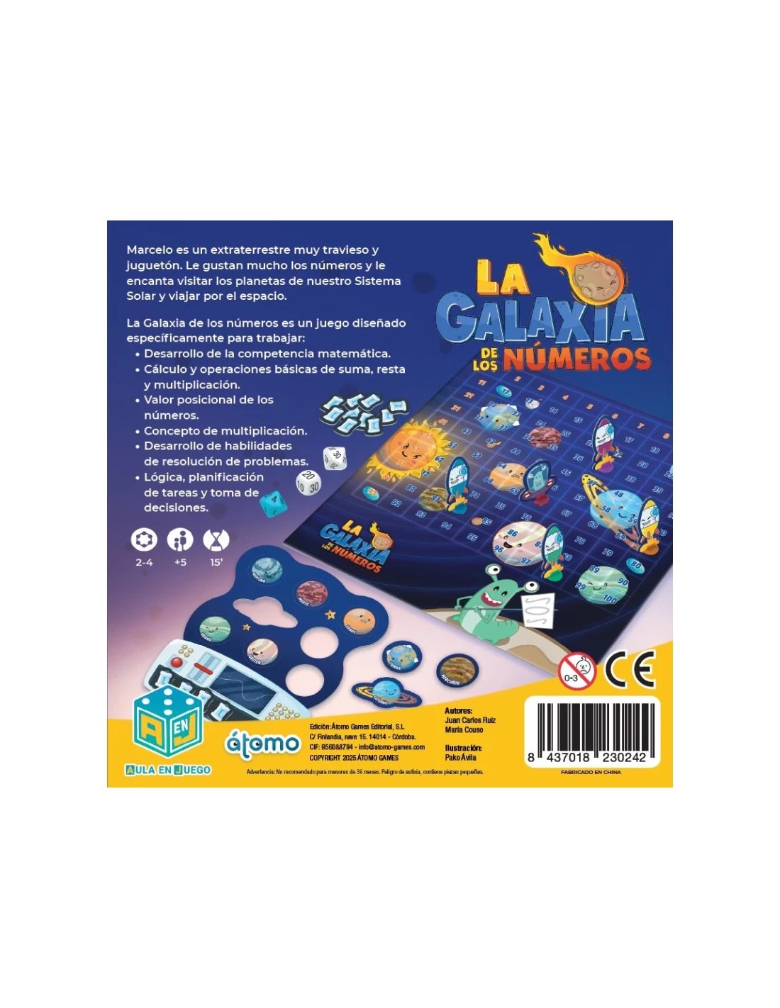 La Galaxia de los Números es un juego de mesa educativo que convierte las matemáticas en una emocionante aventura espacial. Diseñado para niños a partir de 5 años (dependiendo del modo de juego) y de 2 a 4 jugadores, este título de Átomo Games es la herramienta perfecta para desarrollar la competencia matemática de forma divertida y lúdica.