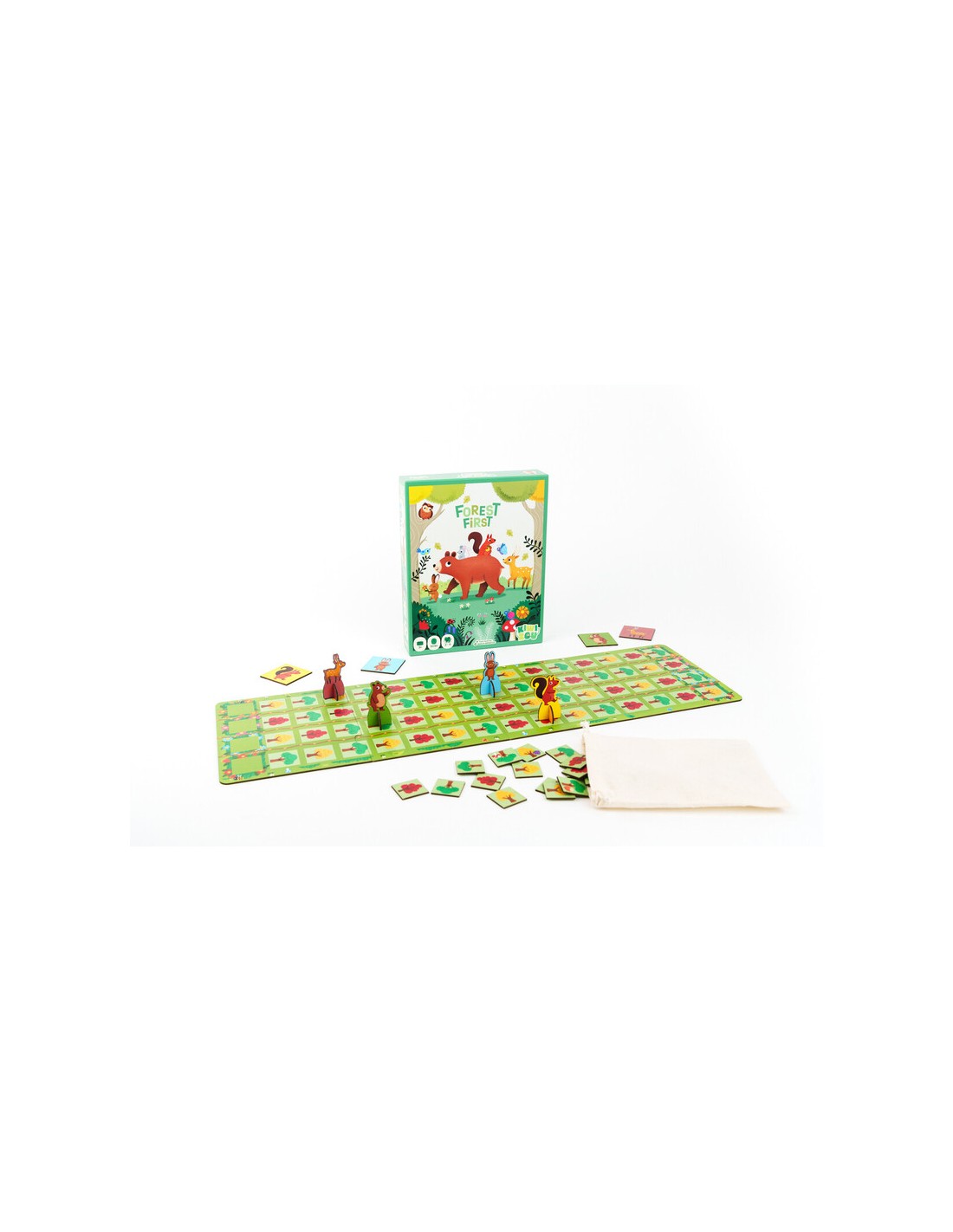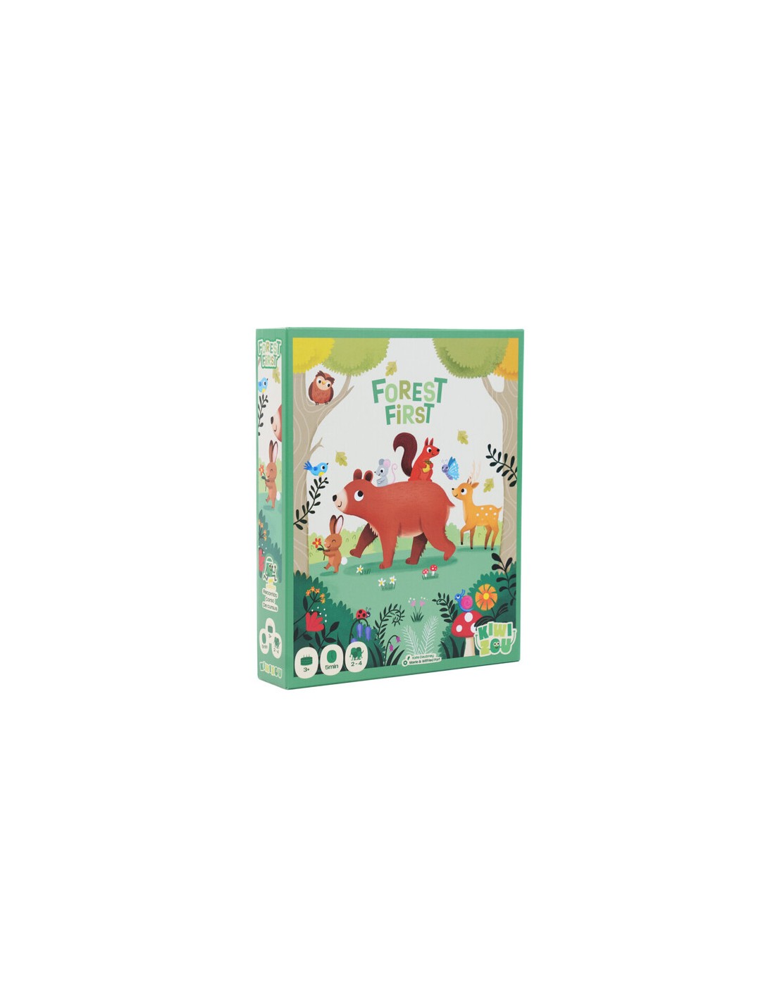 Forest First es un juego de mesa para niños pequeños creado por Kiwizou, pensado para edades a partir de 3 años. En esta encantadora carrera forestal, los jugadores avanzan como animales por un sendero de árboles, revelando losetas que indican cómo moverse… ¡pero los tentempiés del camino pueden hacerles parar!