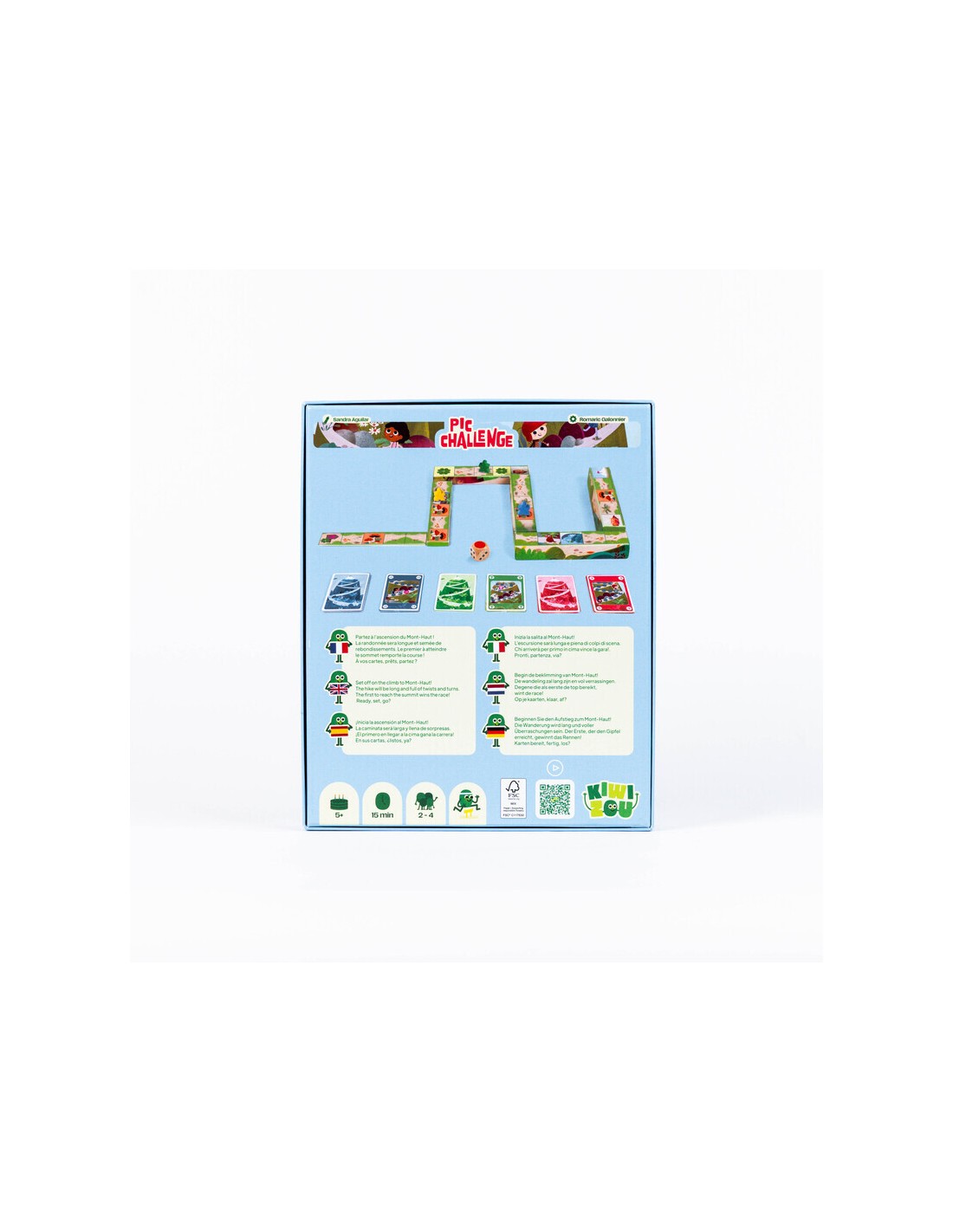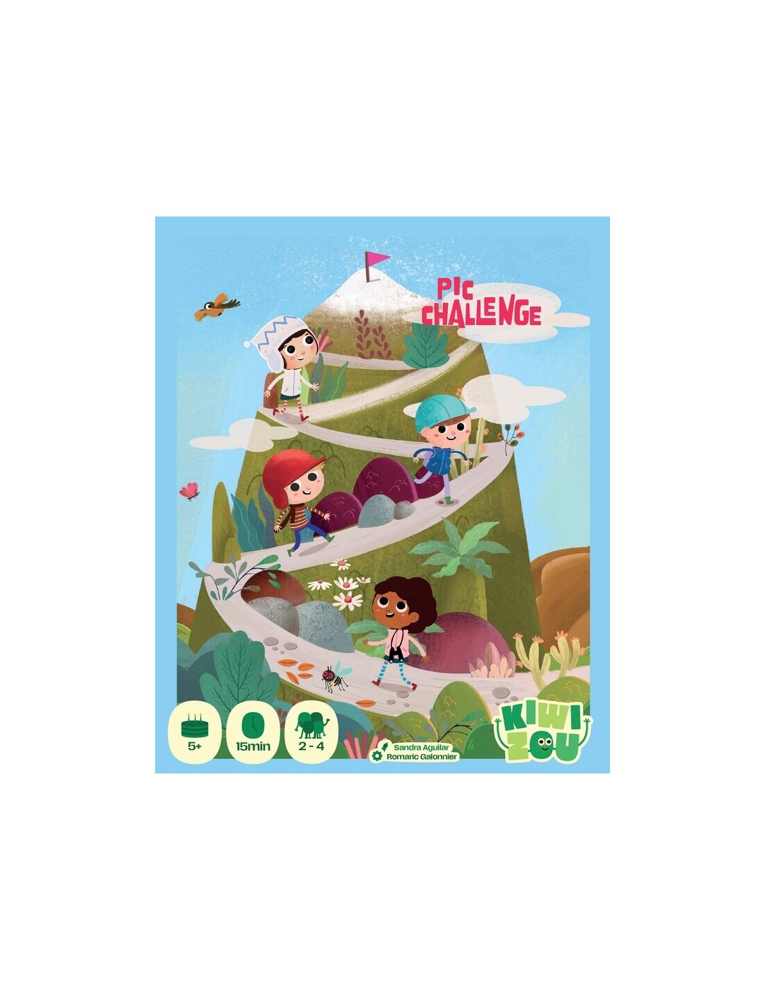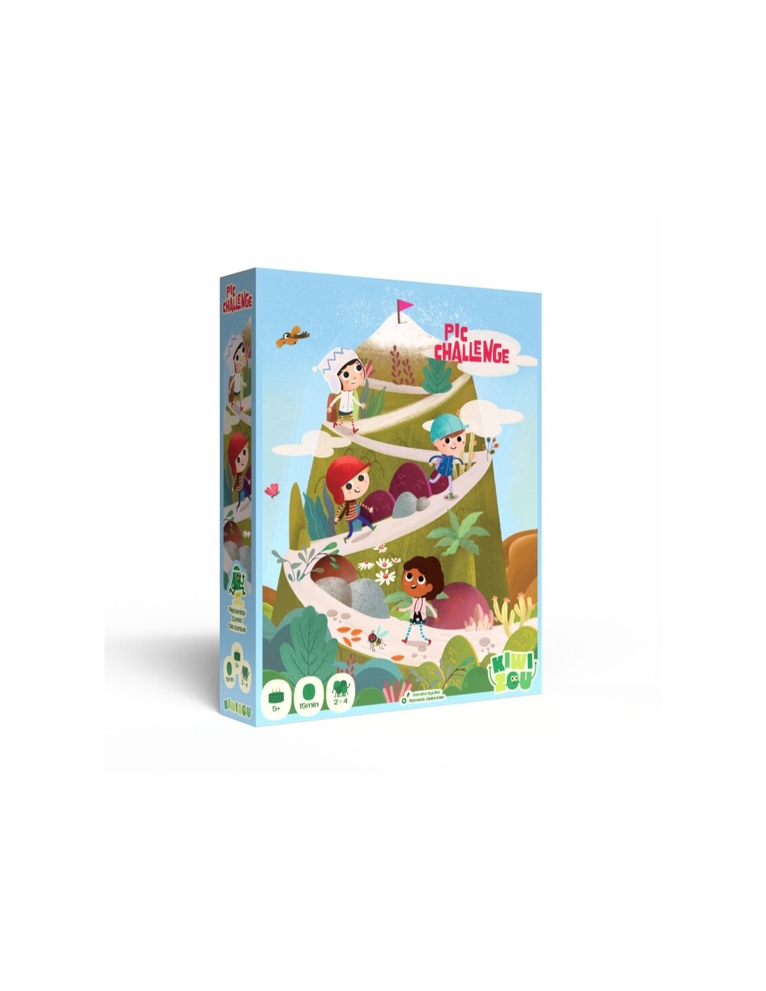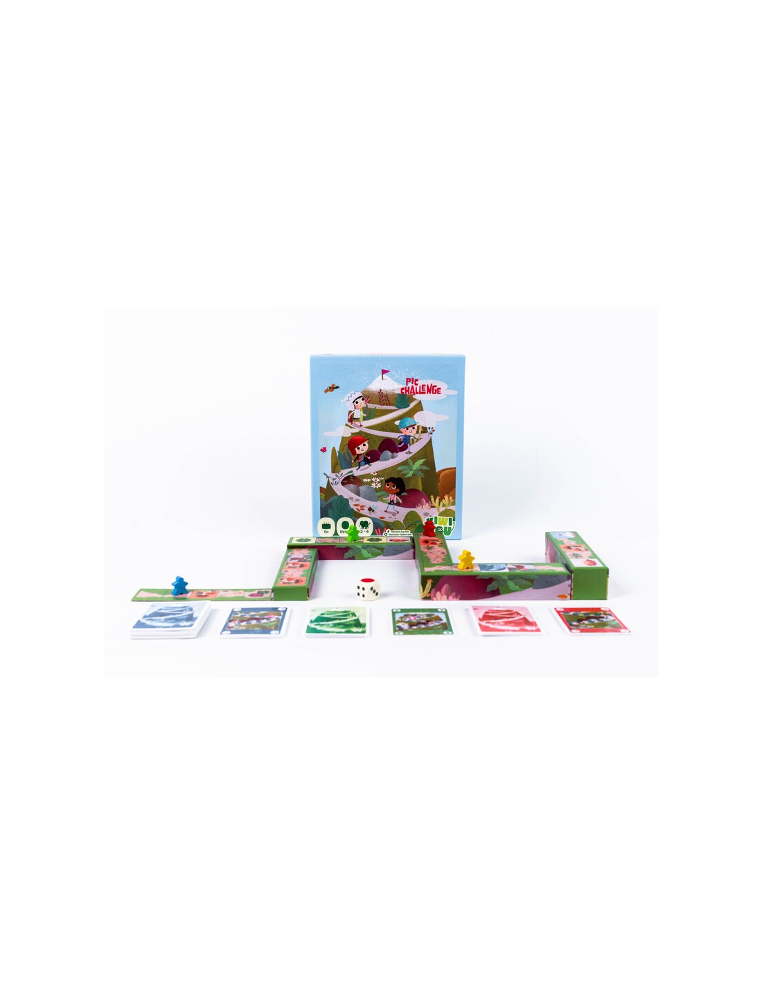 Pic Challenge es un juego de mesa infantil creado por Kiwizou, pensado para niños a partir de 5 años. En esta emocionante aventura, los jugadores se convierten en pequeños senderistas que compiten por llegar primero a la cima del Mont-Haut, enfrentando obstáculos, sorpresas y duelos en el camino.