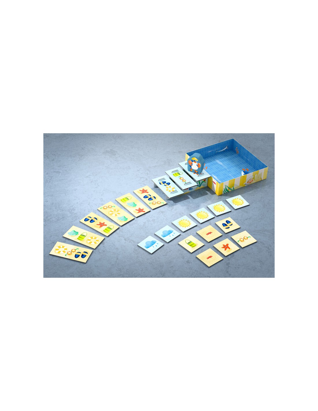 Mis Primeros Juegos TO GO – ¡Al Agua, Piwi! de HABA es un encantador juego cooperativo y de memoria para niños a partir de 2 años, diseñado para acompañar a las familias en cualquier lugar gracias a su formato compacto de viaje. En esta aventura, los peques ayudan al simpático pollito Piwi a prepararse para su chapuzón, encontrando las fichas correctas y siguiendo instrucciones sencillas que estimulan sus primeras habilidades lúdicas.