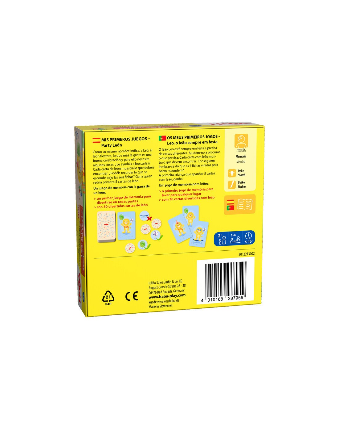 Mis Primeros Juegos – Party León, de HABA, es un adorable juego de memoria y observación para niños a partir de 2 años. León está preparando una gran fiesta y necesita encontrar sus objetos favoritos… pero están escondidos bajo las fichas. Los peques deberán recordar dónde está cada uno y ayudarle a prepararse para la celebración.