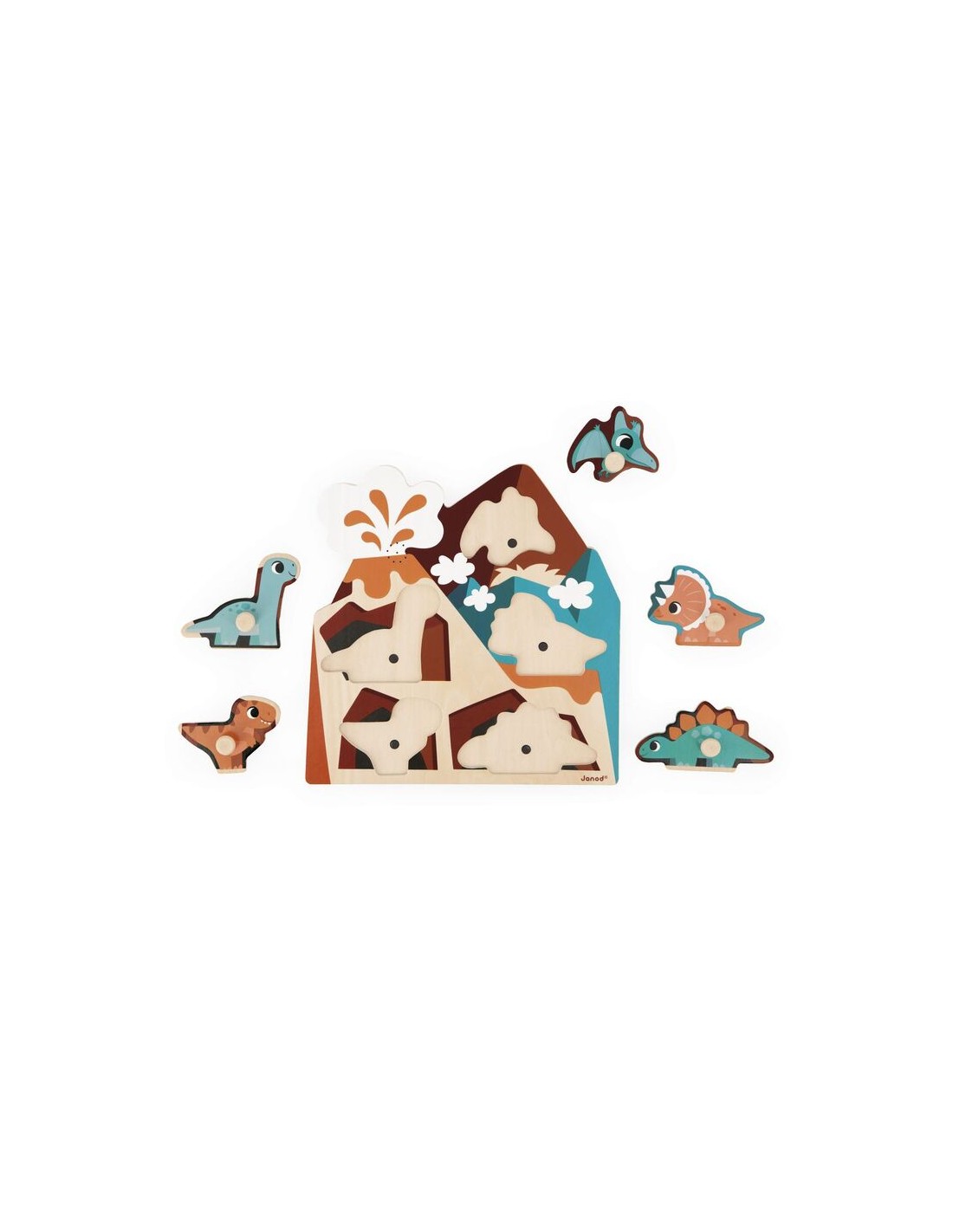¡Una actividad divertida que sumerge al niño en un mundo fascinante, poblado por criaturas prehistóricas y un volcán en erupción! Con su práctico tamaño de 24 x 25 cm, este rompecabezas con sonido está hecho de madera con certificación FSC™. ¿Listo para una aventura sonora en la época de los dinosaurios?