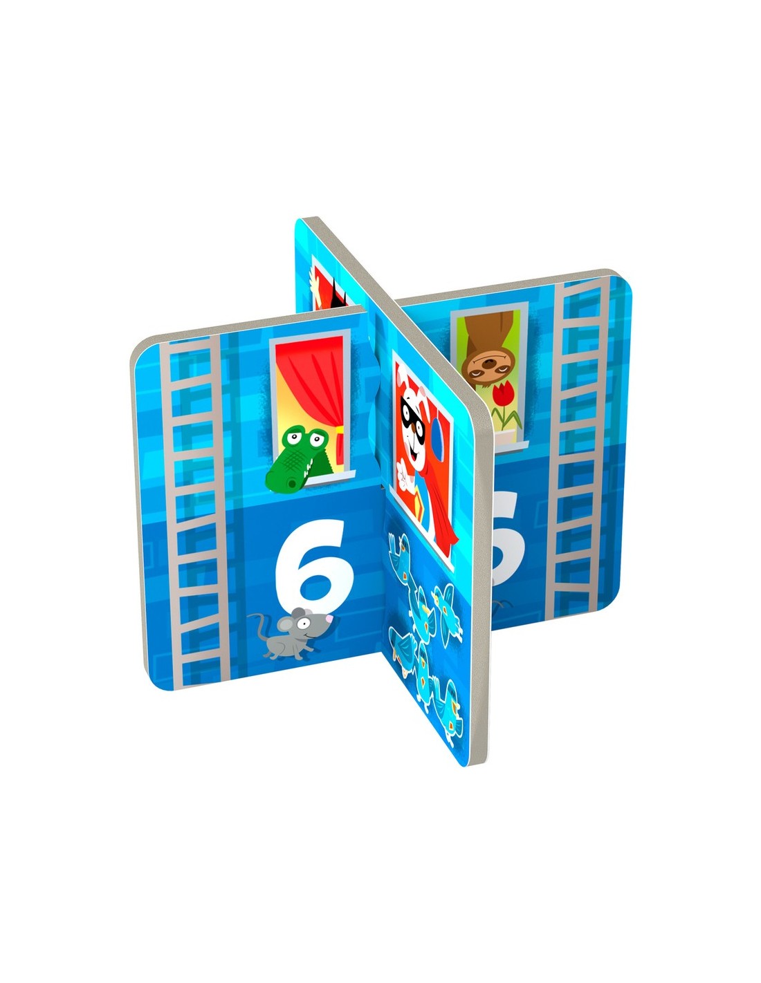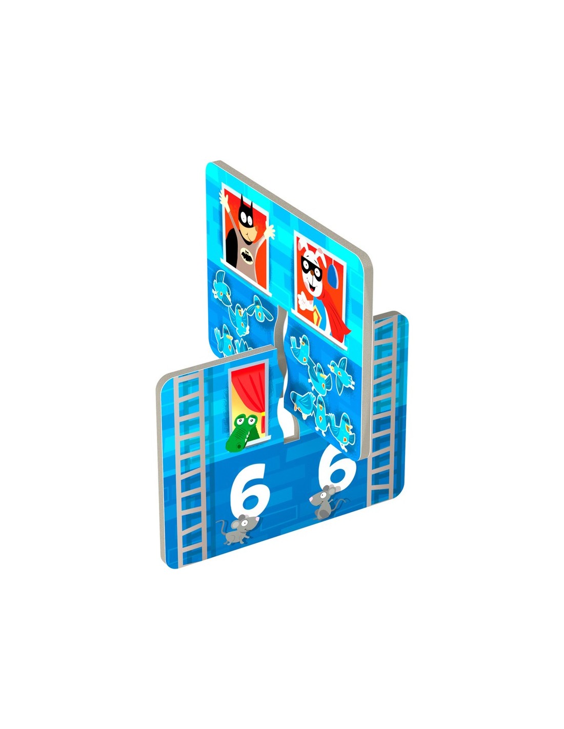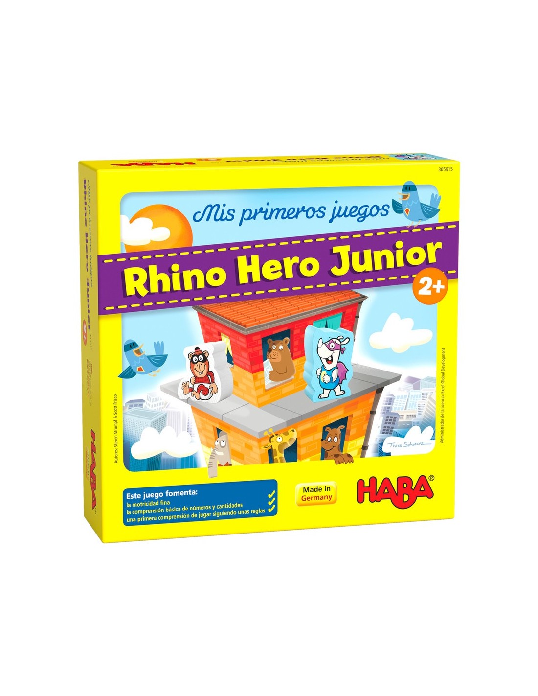 Rhino Hero Junior es un acróbata que siempre mira hacia lo alto y disfruta de la compañía de jóvenes exploradores en sus aventuras. En tres juegos diferentes, los niños y niñas practican la motricidad fina y adquieren una comprensión básica de los números y las cantidades mientras clasifican y apilan pisos. En el tercer juego, también ejercitan la memoria. Piso a piso, la diversión y la curva de aprendizaje van aumentando hasta que el heroico rinoceronte llega a lo más alto y los niños y niñas comparten la alegría de vencer conjuntamente.