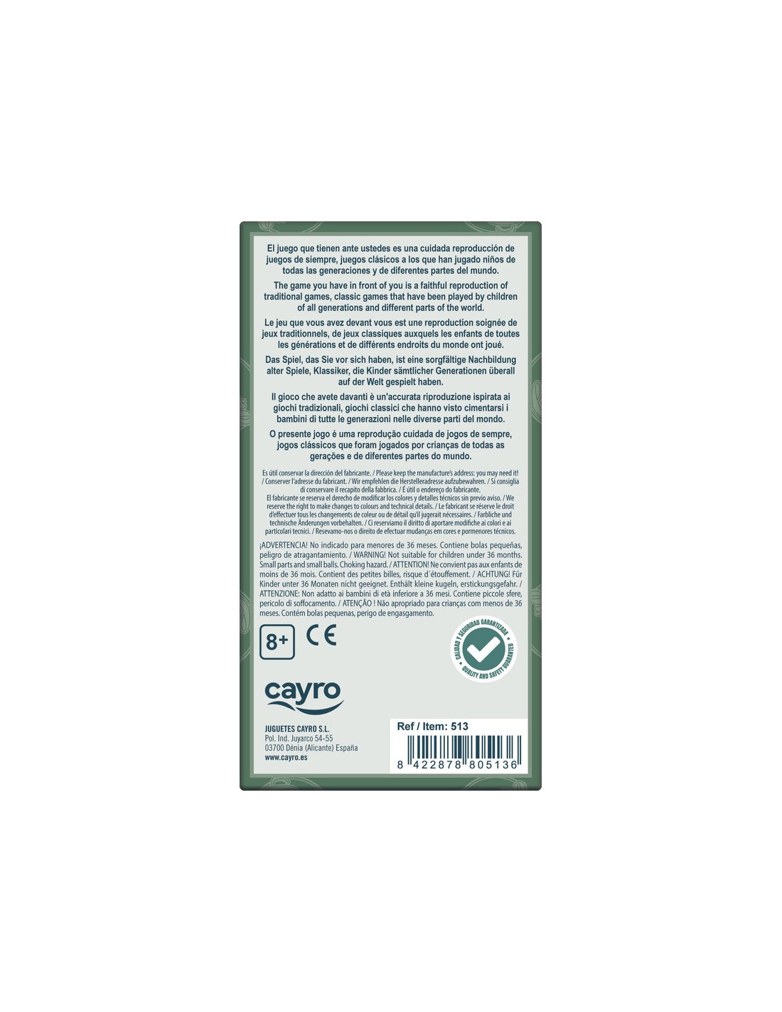 Cayro Collection Canicas es una versión moderna y educativa del clásico juego de canicas, diseñada por Cayro para ofrecer diversión intergeneracional. Ideal para niños a partir de 8 años y adultos nostálgicos, este juego fomenta la coordinación, la estrategia y el juego al aire libre.