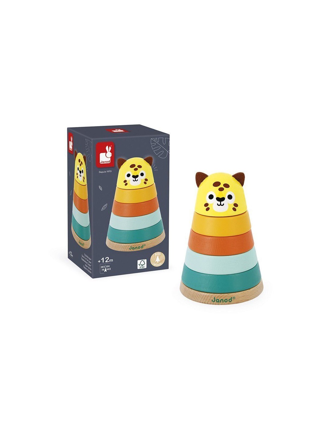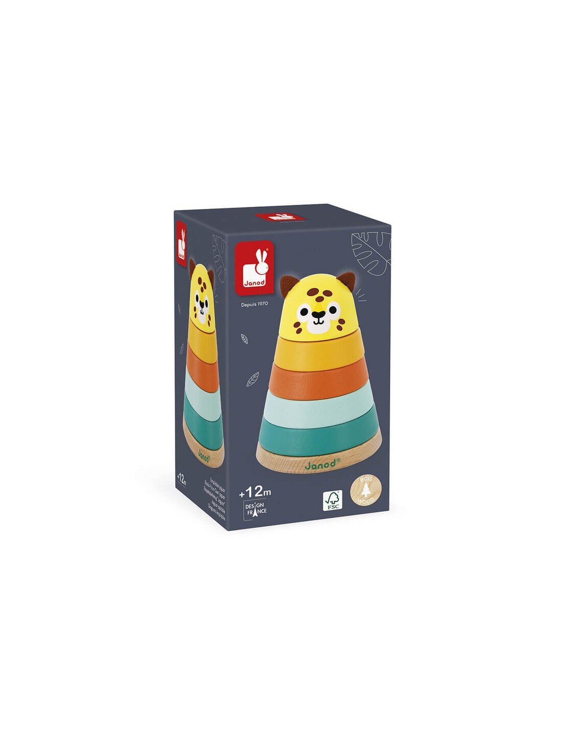 Jaguar Apilable es un juguete de madera de la colección Tropik de Janod. Nos encontramos con una precioso juego en el que los niños tendrán que colocar en orden las piezas de madera. para reconstruir el jaguar. Ideal para desarrollar la motricidad fina y familiarizarse con los colores.