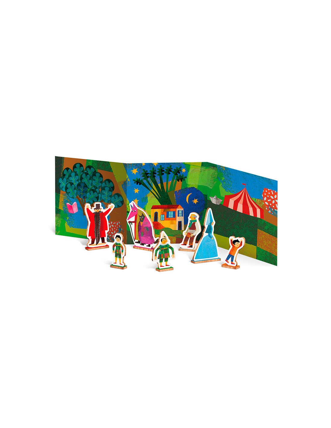 Contiene además un escenario con personajes de madera para escenificar el cuento.