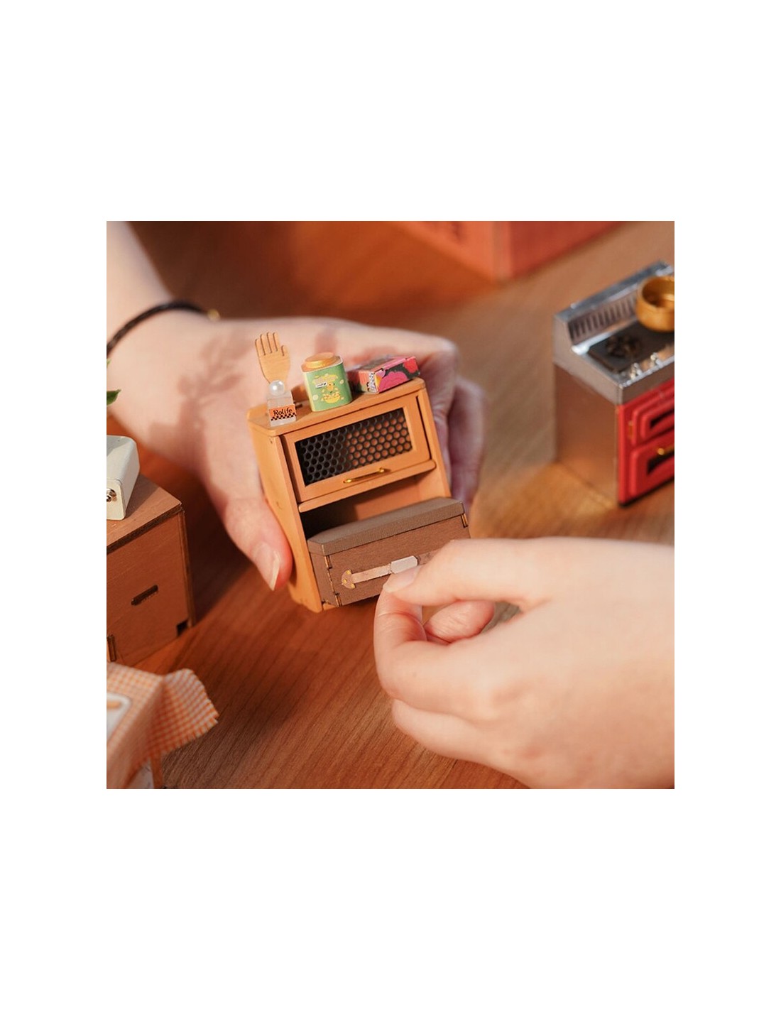 La Betty’s Kitchen de Rolife | Robotime es una encantadora maqueta miniatura DIY que recrea una cocina vintage llena de detalles realistas. Este kit de construcción en 3D es perfecto para adultos y adolescentes que disfrutan del modelismo, la decoración creativa y las manualidades relajantes.