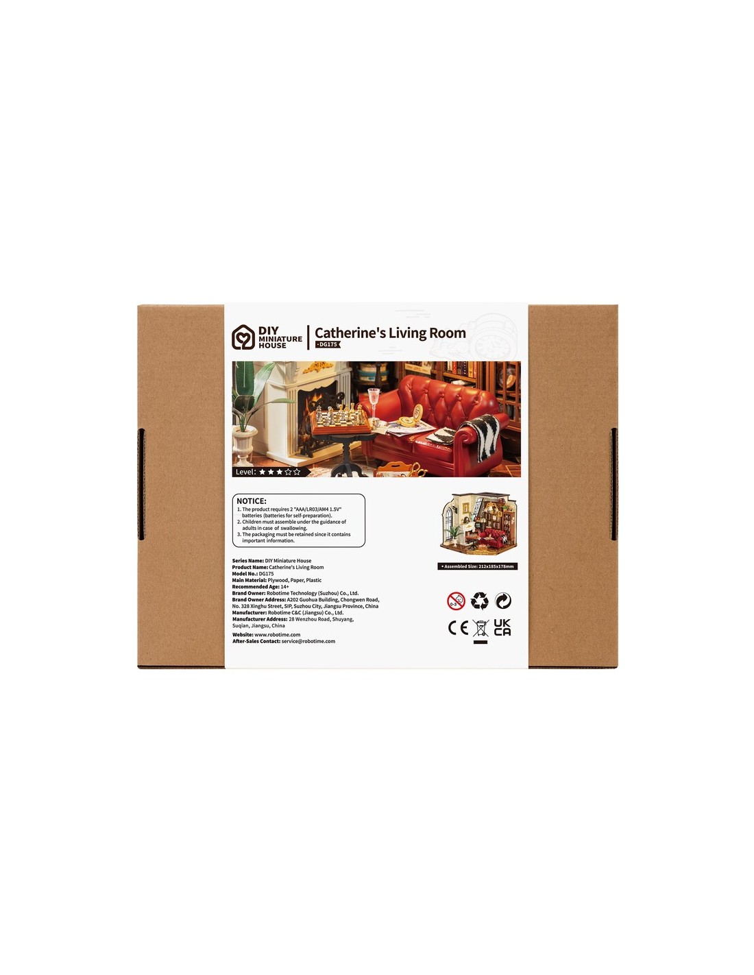 El Salón de Catalina de Rolife es una maqueta DIY en miniatura que recrea un elegante salón clásico lleno de detalles. Incluye sofá de cuero, chimenea iluminada, lámpara de pie, estanterías y accesorios decorativos, todo pensado para dar un ambiente cálido y realista. Un kit perfecto para quienes disfrutan de las manualidades creativas, la decoración y el coleccionismo, con montaje paso a paso y luces LED integradas que aportan magia a la escena.