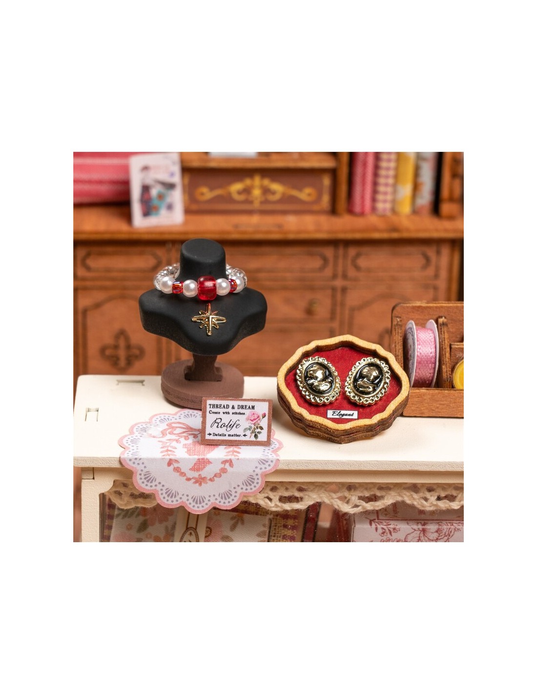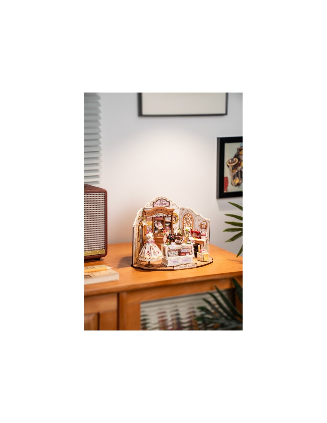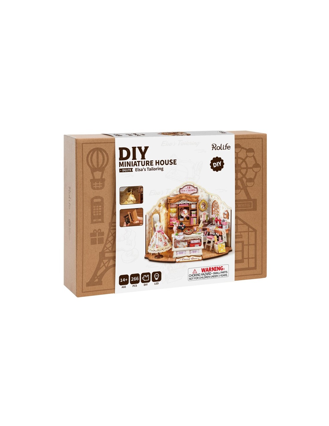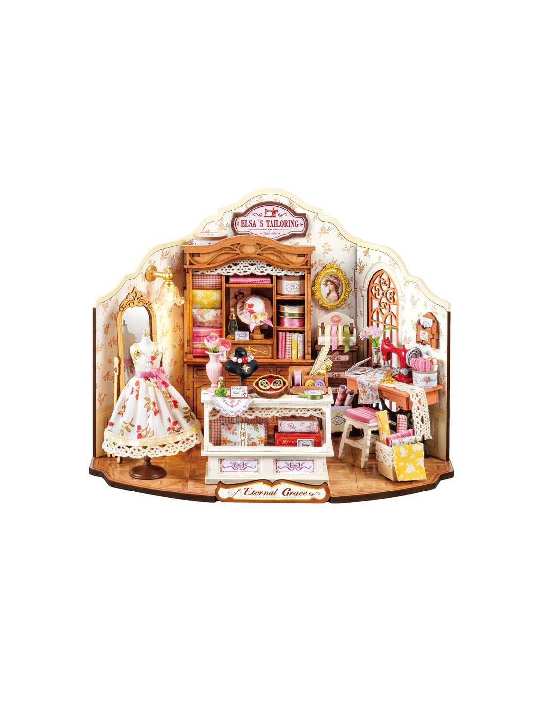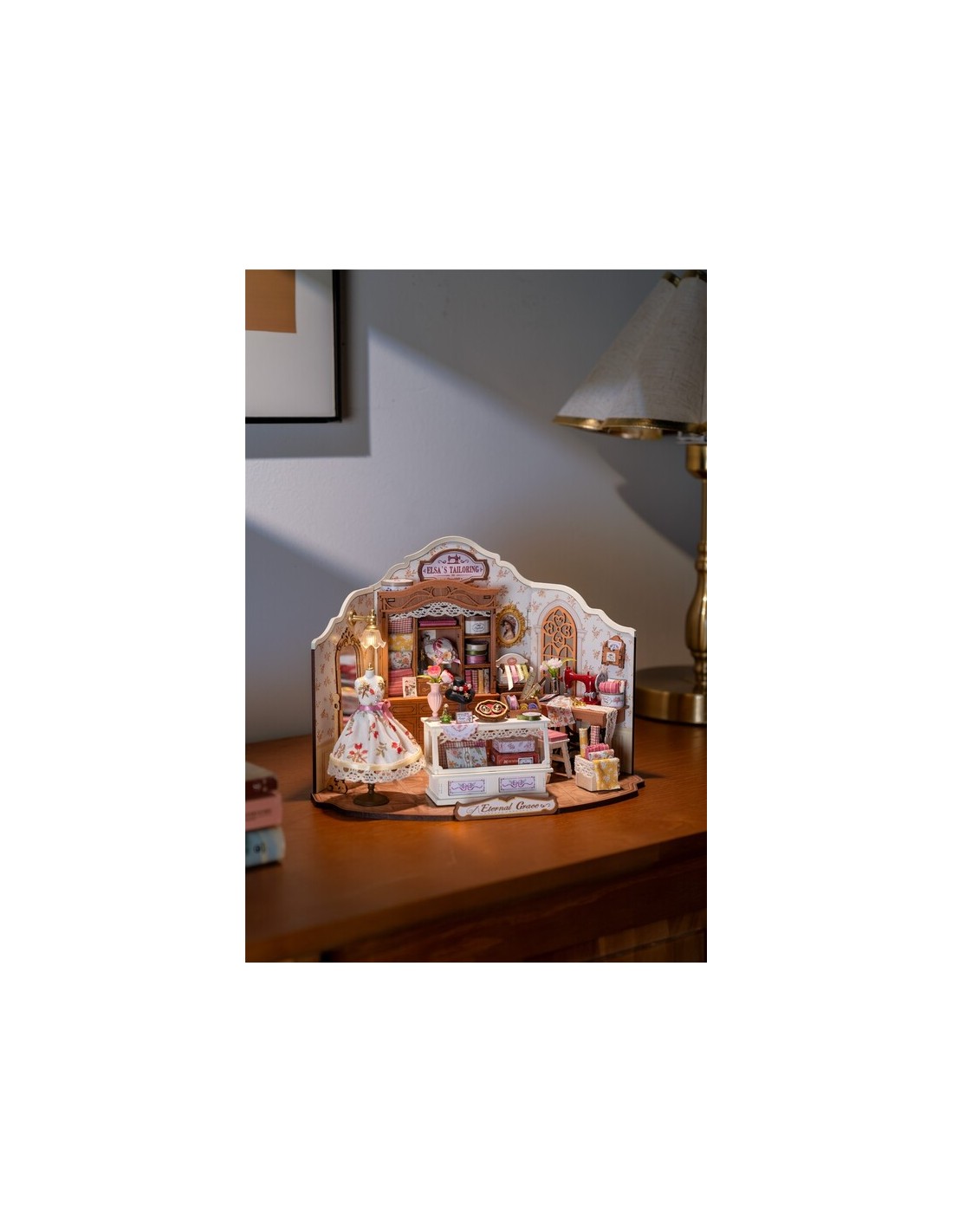 La Sastrería de Elsa es una casa en miniatura DIY que recrea un elegante taller de costura francés con un aire vintage y romántico. Entre sus detalles destacan el maniquí, máquina de coser, cintas, telas, sombrereras y accesorios decorativos, todo acompañado de iluminación LED integrada que aporta realismo y calidez. Un kit perfecto para quienes disfrutan de las manualidades creativas, la decoración y el coleccionismo, ofreciendo una experiencia única de montaje paso a paso con piezas numeradas.