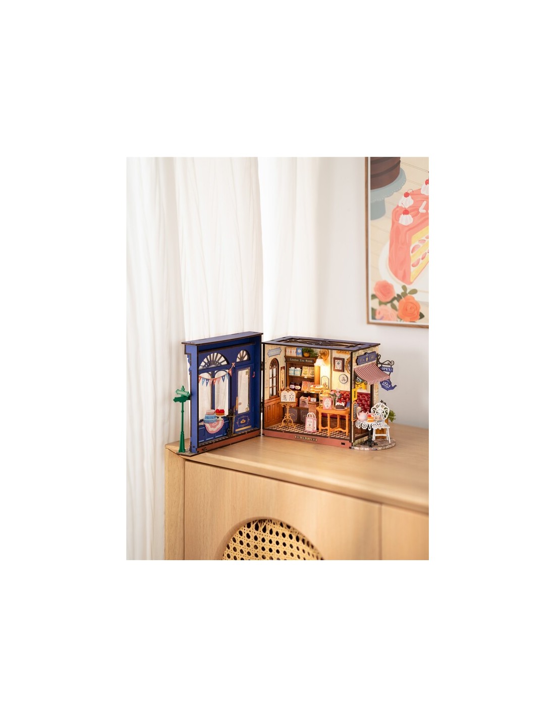 La Rolife Leisure Time Tea Room es una encantadora maqueta DIY de 304 piezas que permite construir un acogedor salón de té de estilo europeo. Este kit destaca por su cuidada ambientación: fachada azul, vitrinas llenas de dulces, zona exterior, suelos de baldosa y detalles vintage que aportan un toque cálido y nostálgico