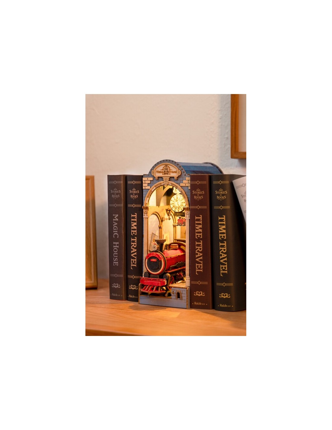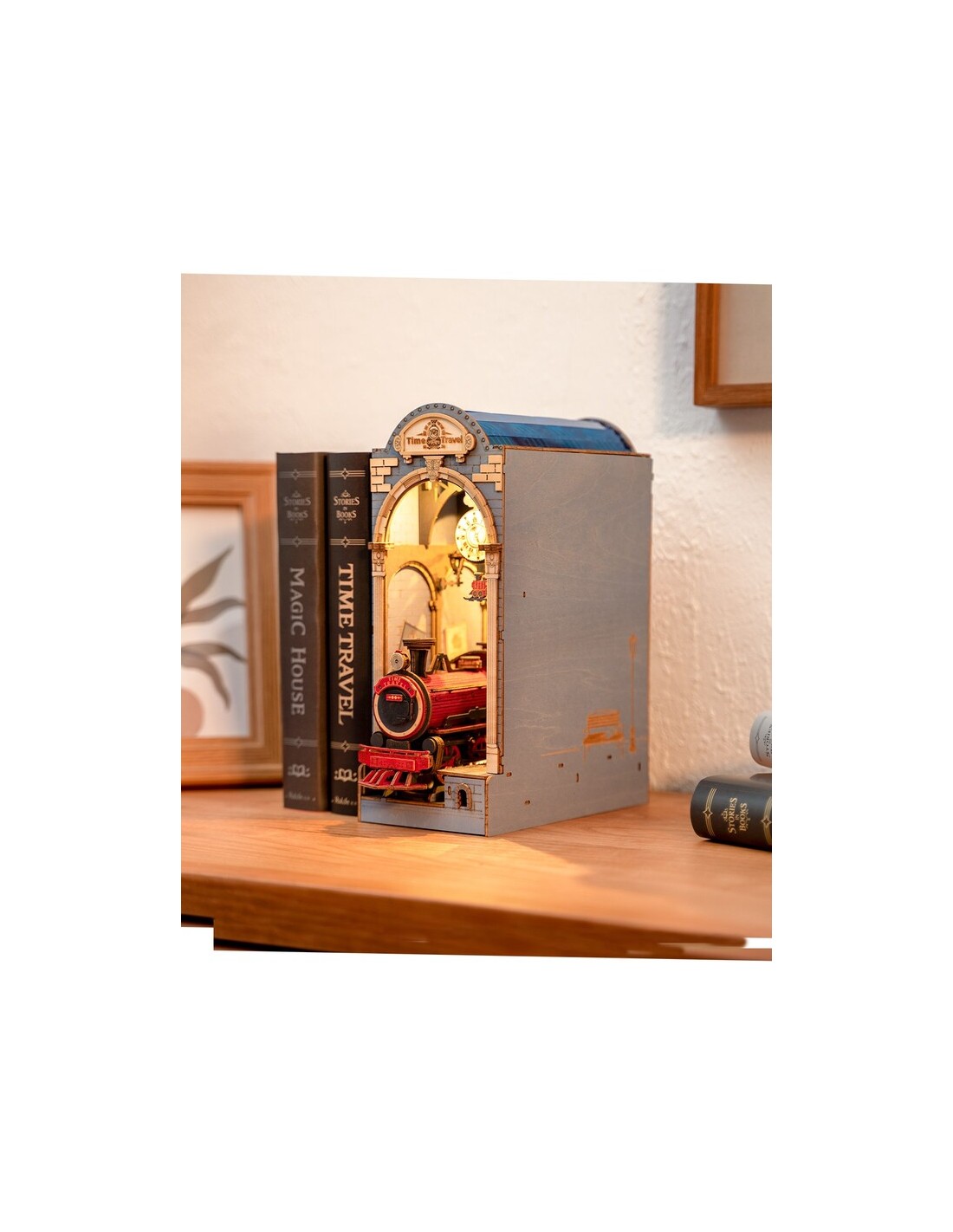 TIME TRAVEL Sujetalibros – Maqueta DIY Steampunk con luz LED