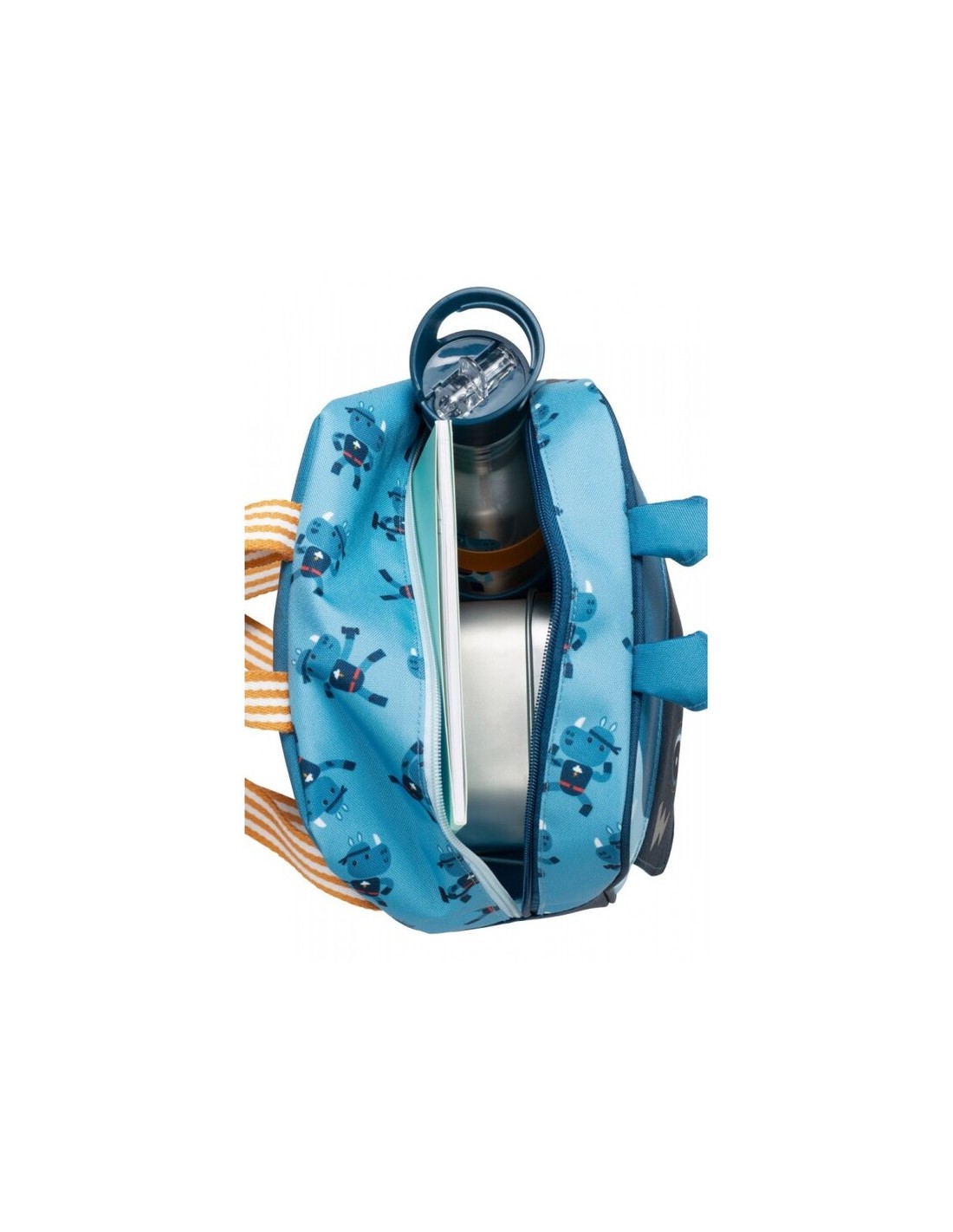 Super Marius no puede irse a salvar el mundo sin su mochila favorita. Esta mochila de Marius el rinoceronte servirá al niño para llevar todas sus cosas. Ideal para ir a la guardería, pasar el día en casa de los abuelos o empezar en el cole, esta colorida mochila tiene un compartimento grande en el que caben un peluche, la merienda y otros secretitos. Es una mochila impermeable y ajustable gracias a los tirantes regulables para adaptarla a los niños a partir de 2 años, que siempre estará en su sitio gracias al cinturón con hebilla de liberación rápida. Por último, esta mochila rinoceronte de 26 x 23 x 12 cm está hecha de poliéster reciclado y se puede lavar a máquina a 30° C. Esta bonita mochila de tonos azules y bonitos dibujos hará que el niño se sienta como un auténtico superhéroe.